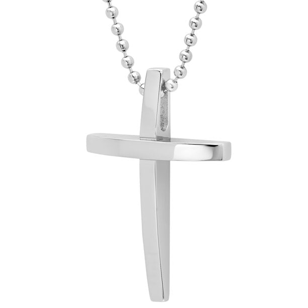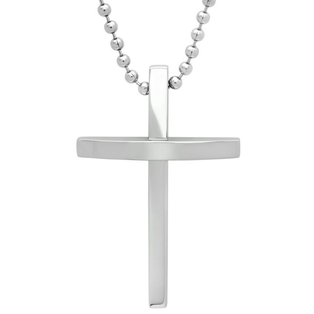 This high polish stainless steel cross pendant is sturdy which makes this cross perfect for everyday wear. The lightweight 24-inch bead chain is easy-to-use and pleasant to wear every day. With its minimal design, this cross pedant is an ideal piece for the conservative man. A flawless high polish finish brings the pendant to life with its impeccable shine! Our stainless steel cross pendant is hypoallergenic and also makes a great gift for teens.