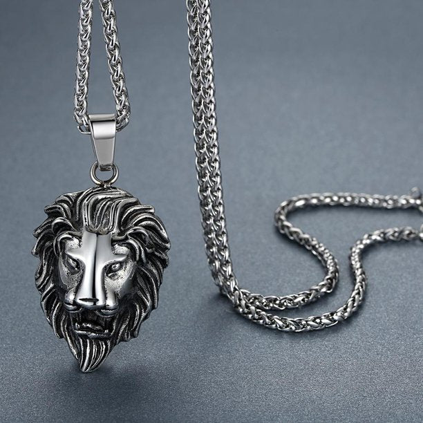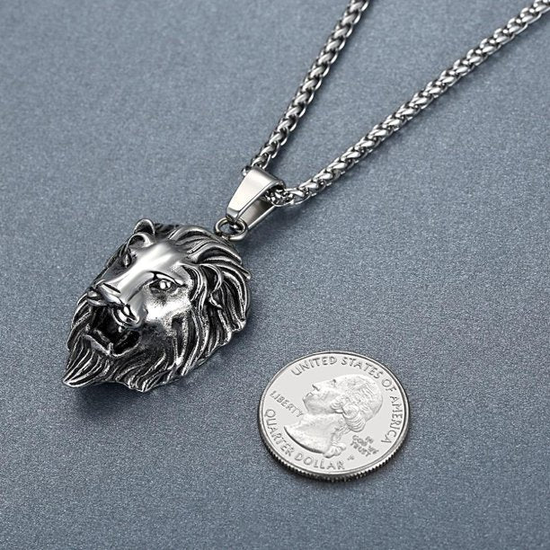 Men's Stainless Steel Lion Biker Pendant Necklace