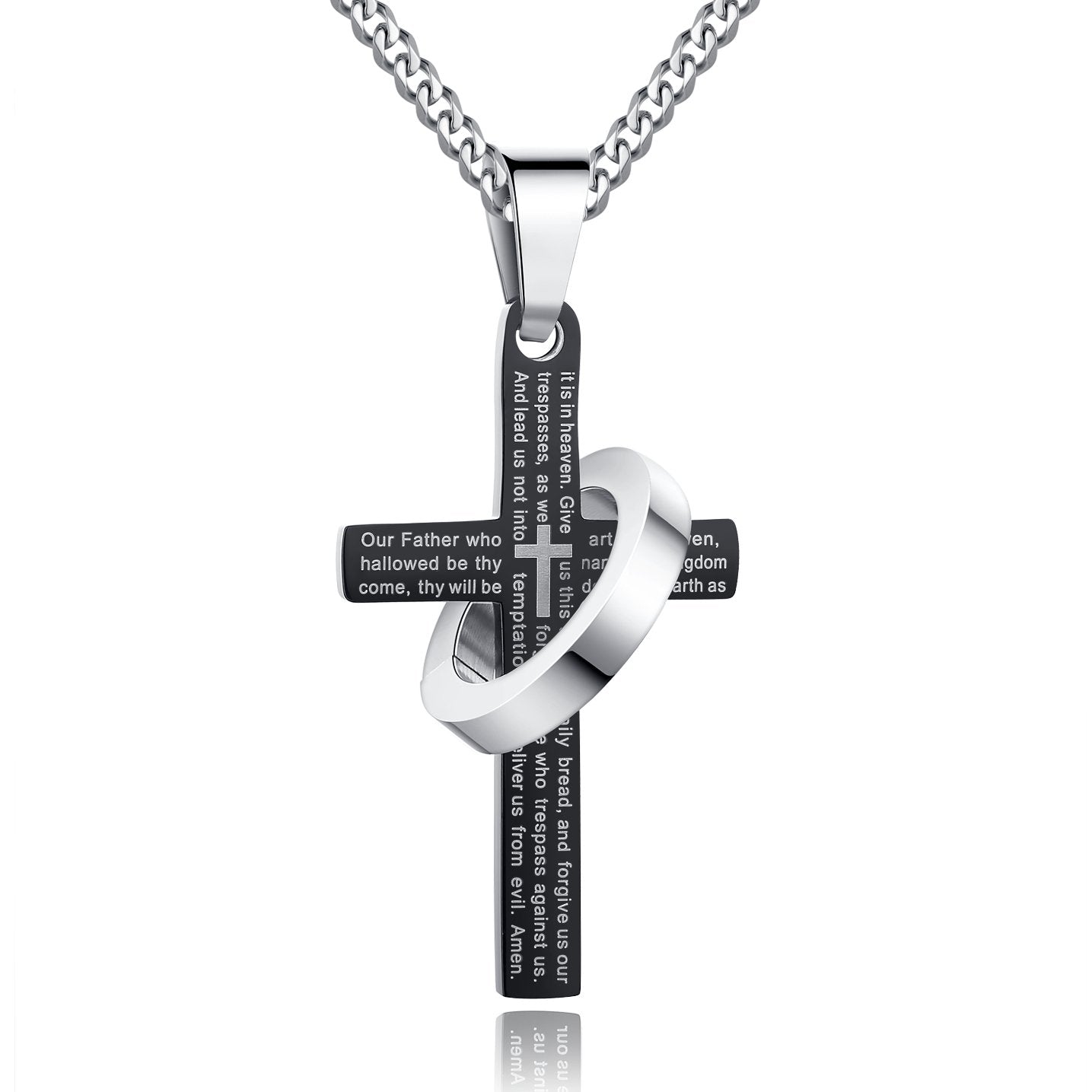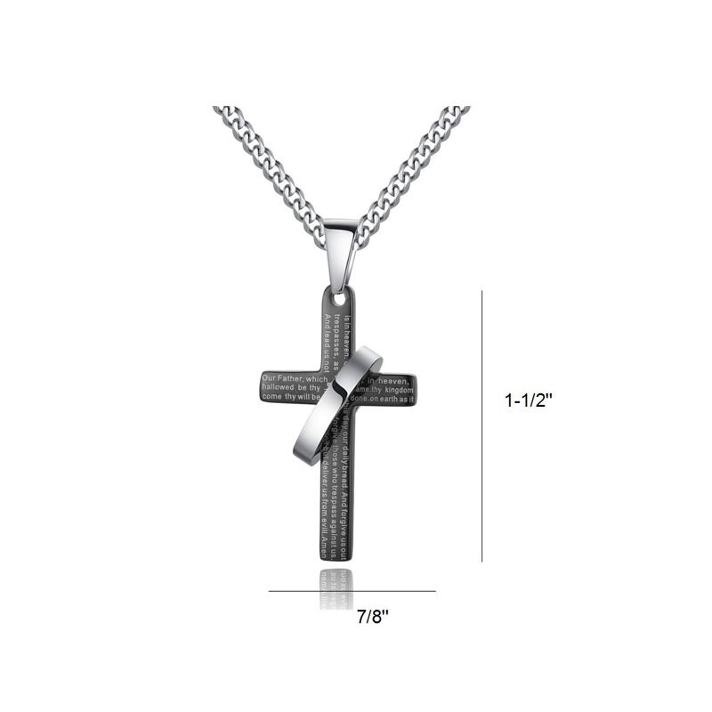 Lord prayer engraving in English - "Our Father who art in Heaven, hallowed be thy name, thy kingdom come, thy will be done on earth as it is in heaven. Give us this day our daily bread, and forgive us our trespasses, as we forgive those who trespass against us. And lead us not into temptation, but deliver us from evil. Amen." Stainless Steel Jewelry is one of the strongest of all jewelry metals, it does not oxidize and it can endure long time wear and tear. Stainless steel will not rust and requires little or no maintenance to keep it looking new. *- Fast and Free USPS First Class Shipping, Order Will Arrive Within 2 to 5 Business Days for Continental United States Addresses *- Come with High Quality Stainless Steel Curb Chain, Chain Length Adjustable from 22" to 24" *- Pendant Height 1-1/2", Width 7/8" *- Strong and Durable Stainless Steel Pendant Necklace. It is resistance to scratching and durable enough to be worn for a lifetime *- Stainless steel jewelry is hypoallergenic, you can wear it without fear of rashes or discolorations *