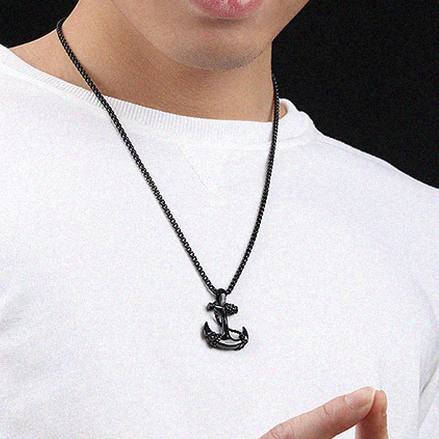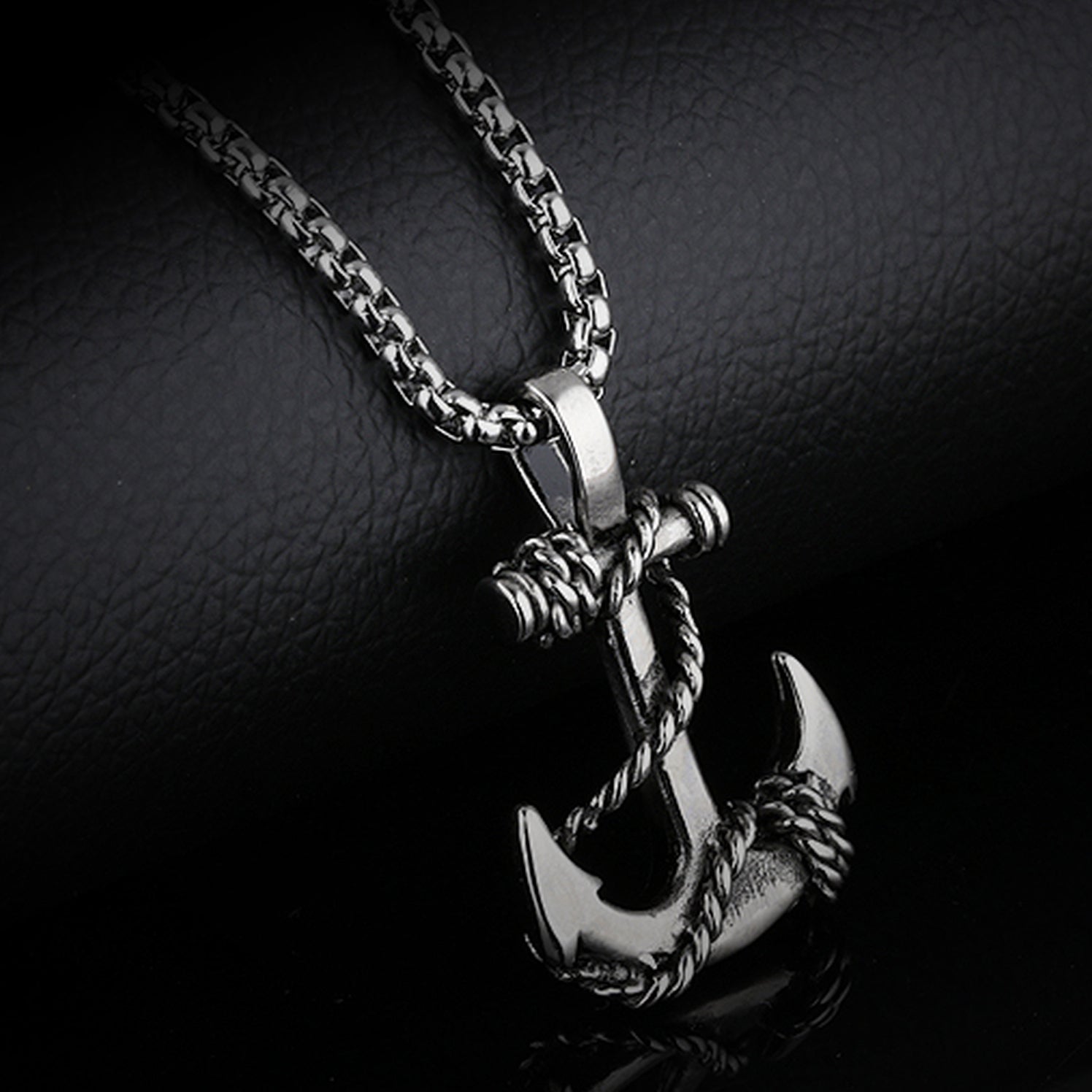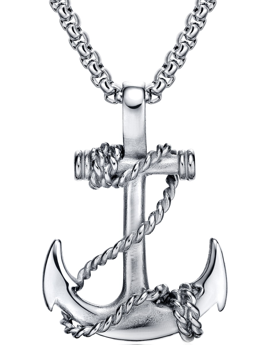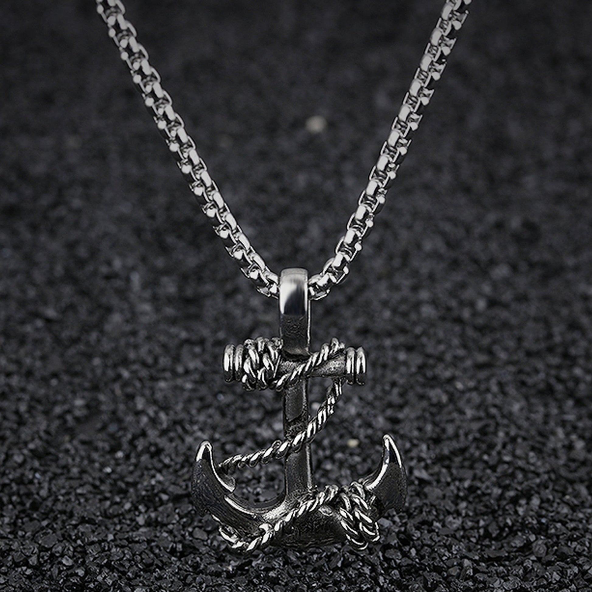 Men's Stainless Steel Rope Anchor Pendant Necklace