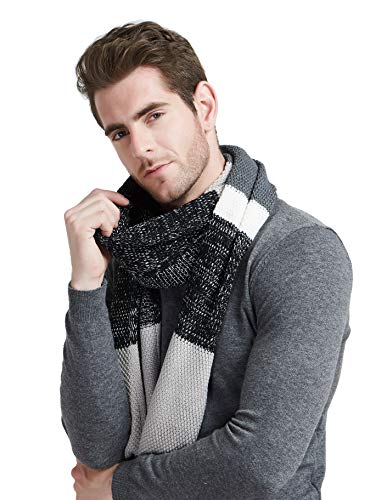 Men's Winter Scarf, Color Block Striped Long Scarf Knit Wool Cashmere Feel Soft Fashion Scarves