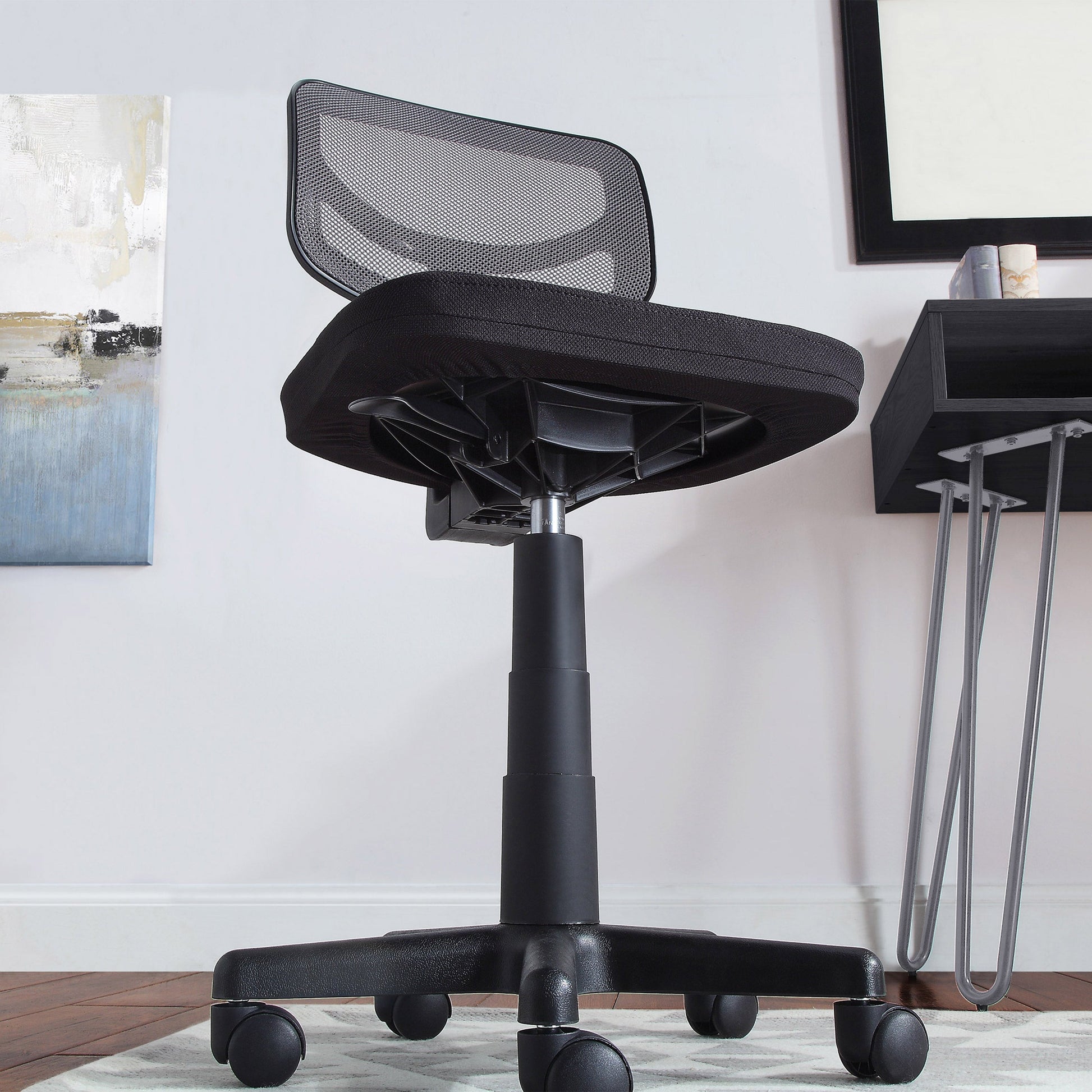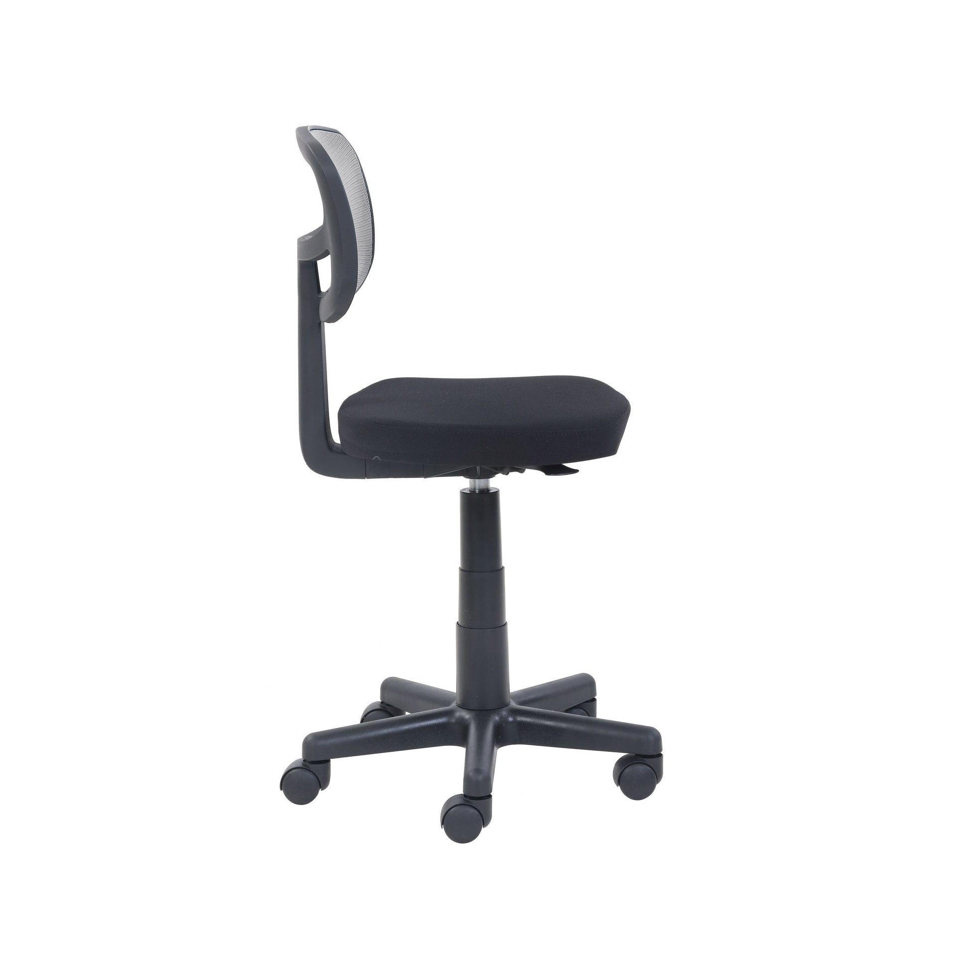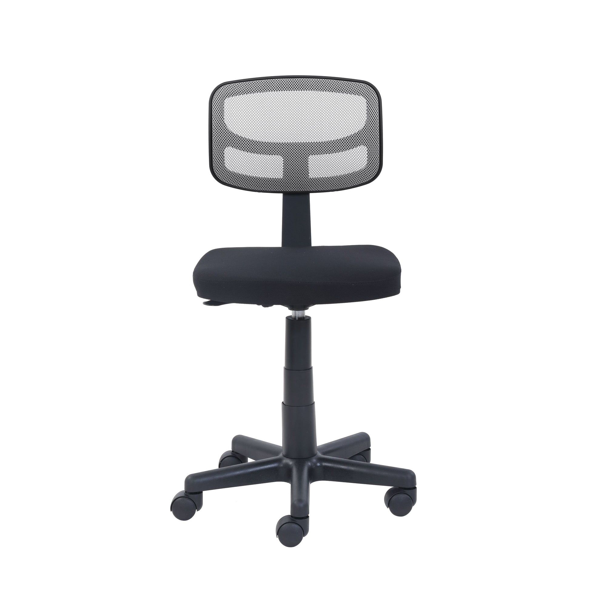 Mesh Task Chair is a blend of comfort, support and mobility. Backrest and seat cover are made of a lightweight breathable black mesh fabric upholstery. The high backrest provides a sturdy support for your back and the generously padded seat adds another layer of contoured comfort during those long workdays. Easily adjust the height of your chair with the convenient pneumatic lift lever to customize chair to fit you. A durable 5-star black nylon plastic base will withstand years of wear and tear with a textured finish. Durable dual caster wheels roll smoothly around the room and are built to last. The Mesh Office Chair will pair well with a variety of desk styles from contemporary to modern and everything in between. Compact design makes this a great chair for any space big or small. Whether in a cubical, home office or dorm room the Mainstays Black Mesh Task Chair provides the contemporary style and functionality you need. Mainstays Fabric Task Chair with Adjustable Height, 250 lbs, Teal: *- Back Type: High Back *- Material: Breathable mesh *- Color: Black Base *- Base Material: Durable Nylon Plastic *- Seat is generously padded with dense foam for long lasting comfort *- Dual caster wheels for easy mobility around the room *- Ideal for home office, dorm room or professional workspaces *- Pneumatic adjustable seat height *- A great fit with any home or office décor styles *- Assembly Required *- Dimensions: 18.25 in W x 19.25 in D x 30.25 in - 35.25 in H (46.36 cm x 48.9 cm x 78.74 - 89.54 cm) *