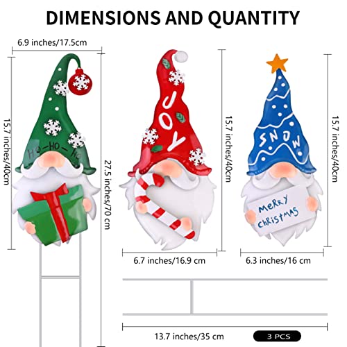 - Size information: the size of the Christmas gnomes metal yard signs is about 16 x 7 inches / 40 x 18 cm, the size of the H-shaped stakes are 12 inches / 30 cm, and the height of the spliced yard signs is about 25.5 inches / 65 cm; the super large size yard signs make your courtyard more spectacular and eye-catching and ideally decorate your courtyard
