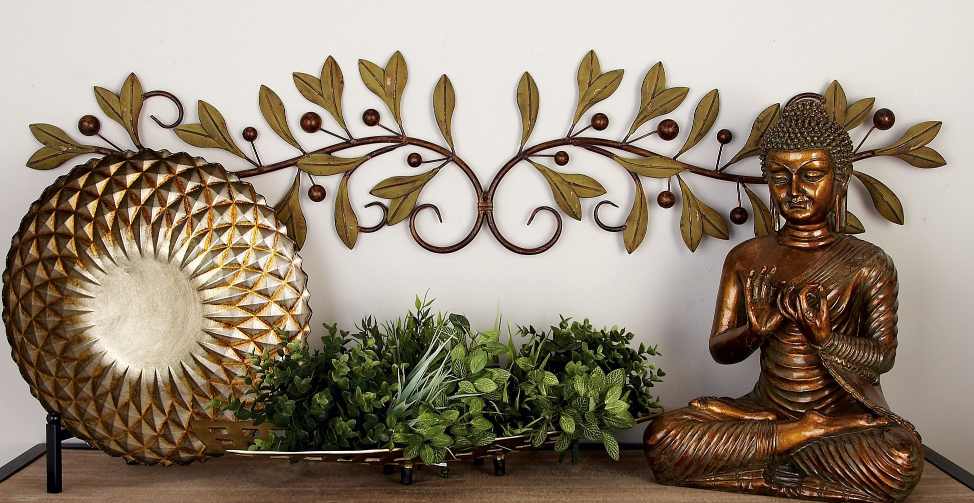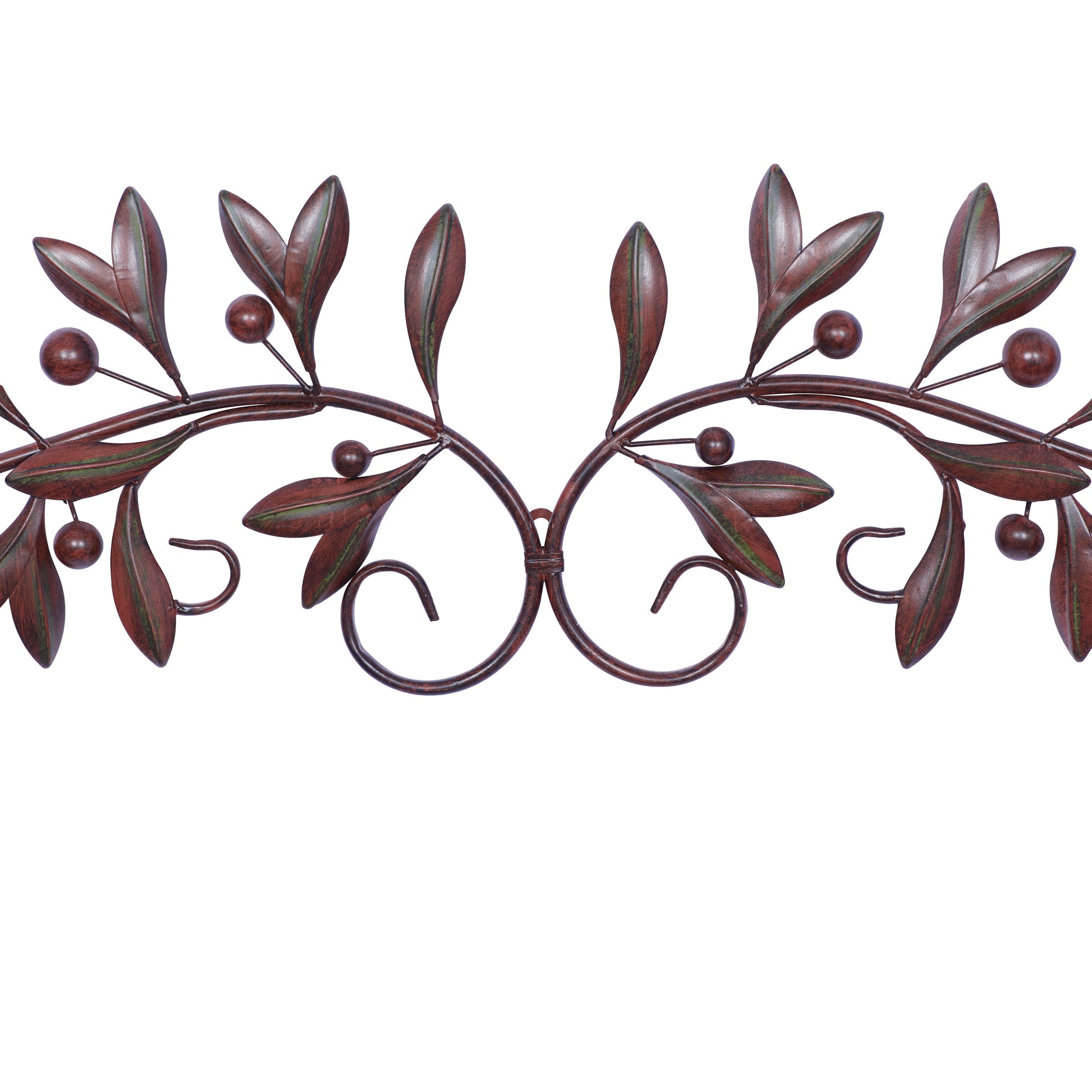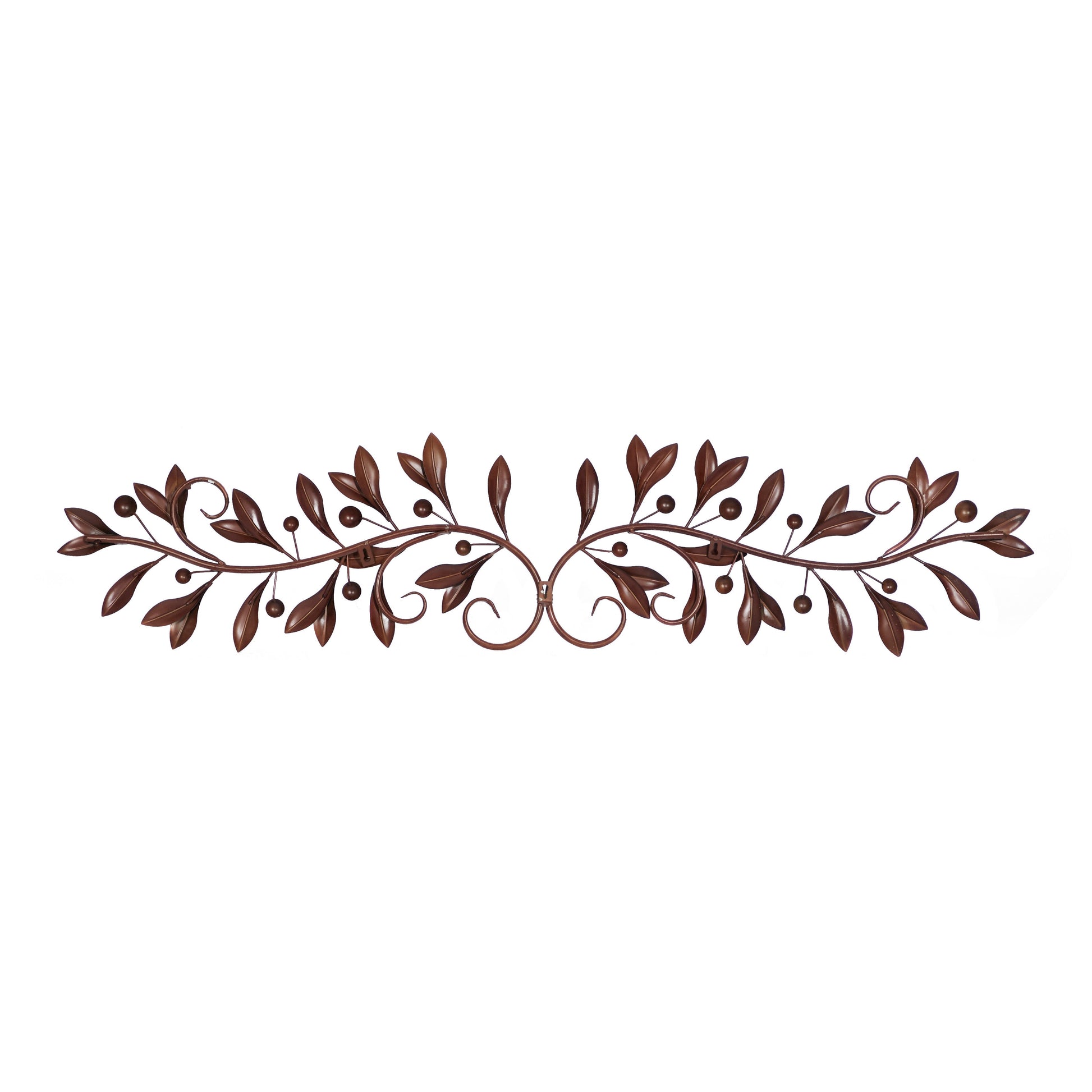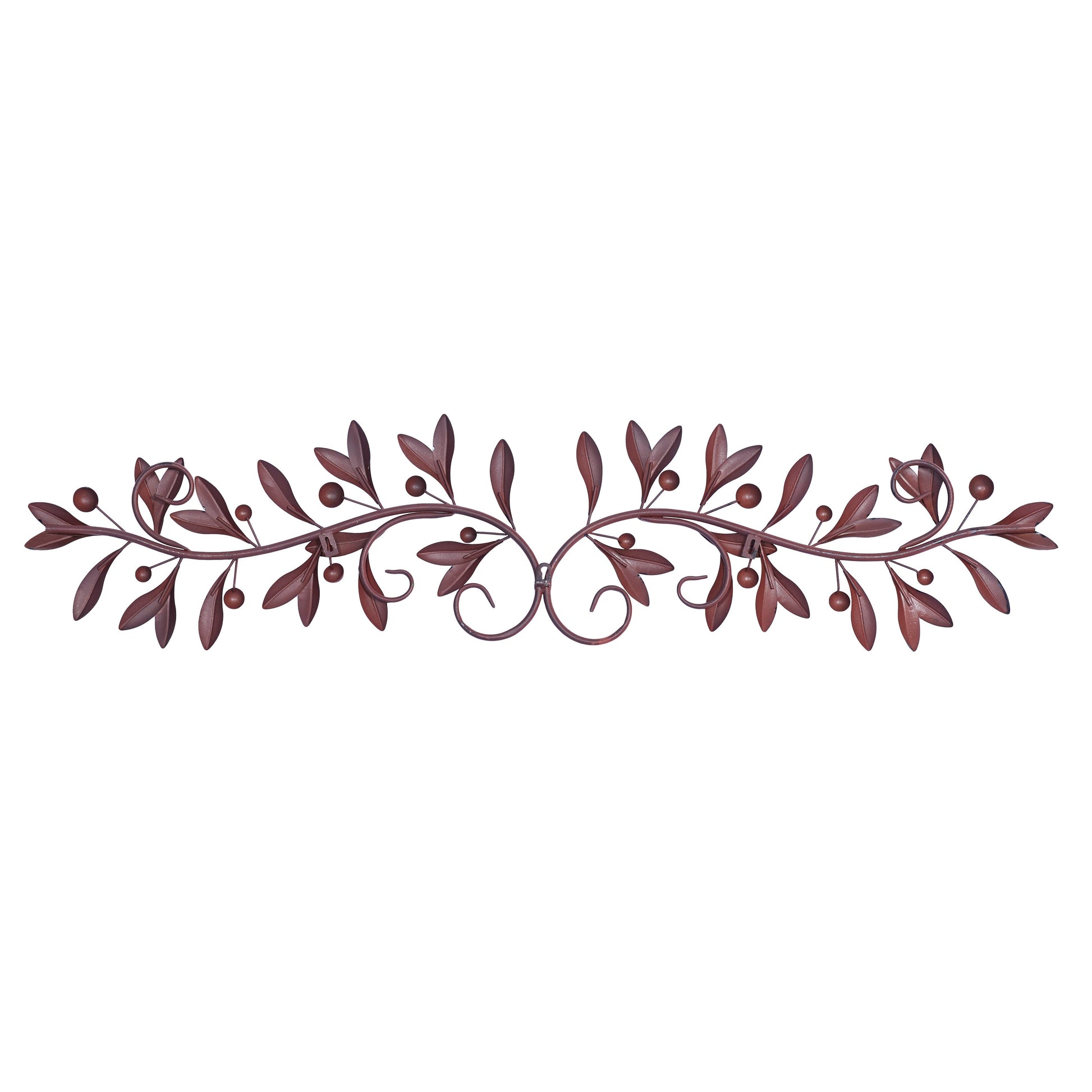 Take a little piece of nature with you back at home as you hang this decorative leaves and fruits wall decor. This extra-large accent decor showcases leaves with berries and scrolled vines in distressed green and brown finish. Their sweet and crafty exterior is comprised of solid iron material, offering durability and versatile functionality to a traditional room and home interior space. This item ships in one carton. Item is ready to hang by keyhole slot in the back. Suitable for indoor use only. Traditional theme. DecMode Indoor Green Metal Traditional Floral Wall Decor *- A traditional inspired designed for classic harmony full of friendly charm *- Leaves wall decor with scrollwork frame is made of a solid iron *- A floral design with shades of matte green and brown finish *- Features leaves with berries vine carvings in textured green and brown finish *- Measurements: 48"L x 1"W x 11"H, weight: 3.15 lbs *- Horizontal display leaves branch shaped with solid pattern *- Wipe clean with a dry cloth *- Metal is formed and welded to create a leaf and branch pattern