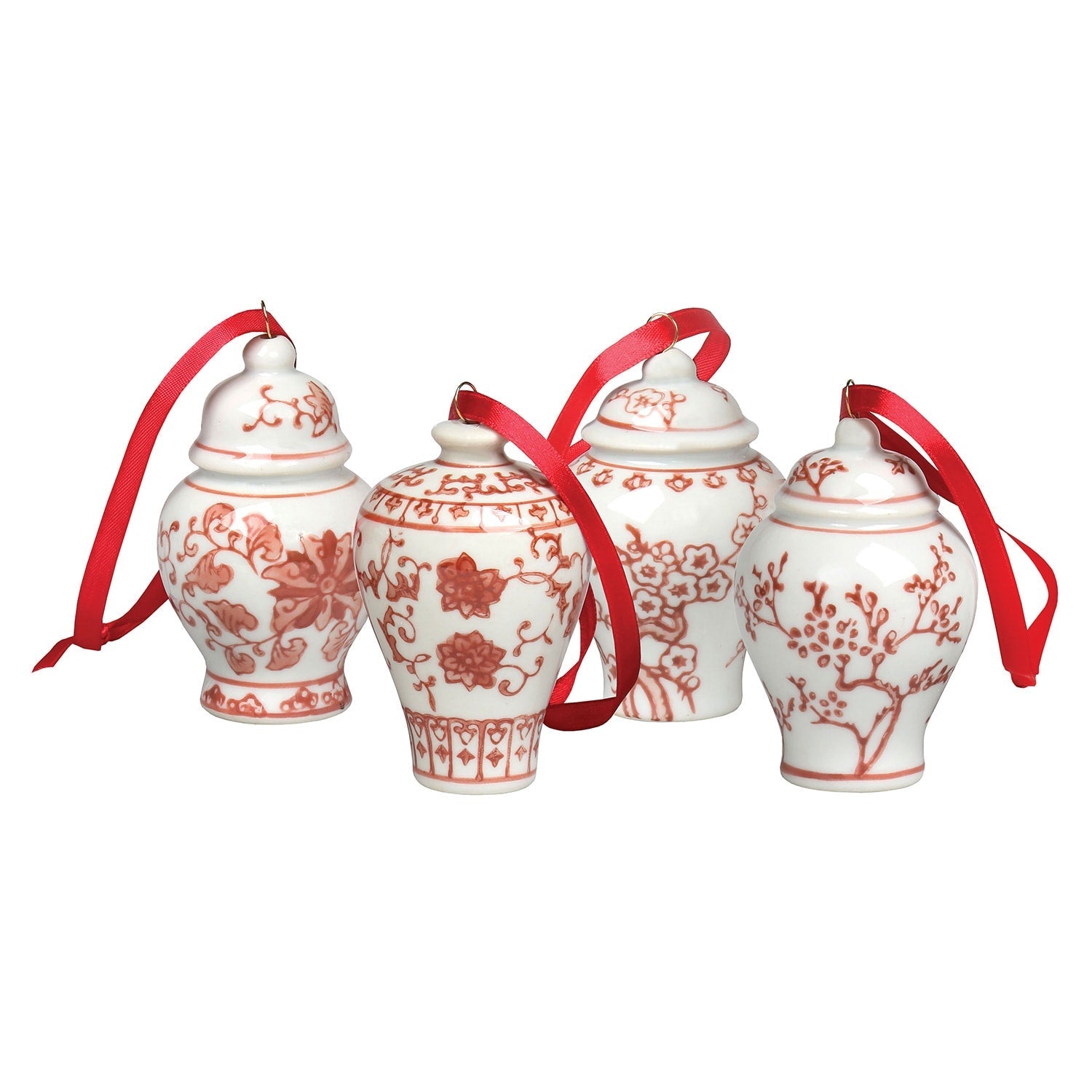 Mini Ginger Jar Ornaments - Set of 4 Porcelain Hanging Chinoiserie Vases