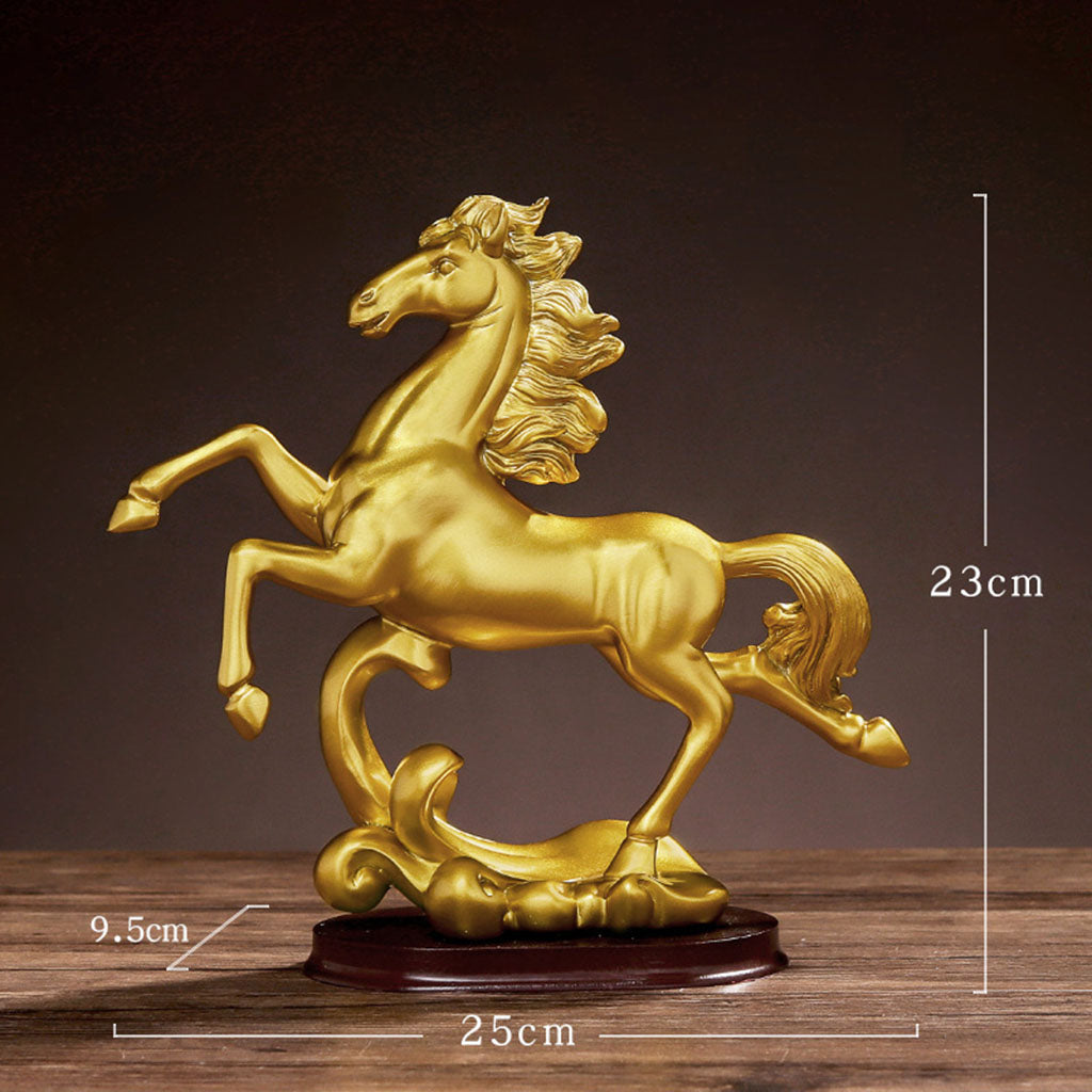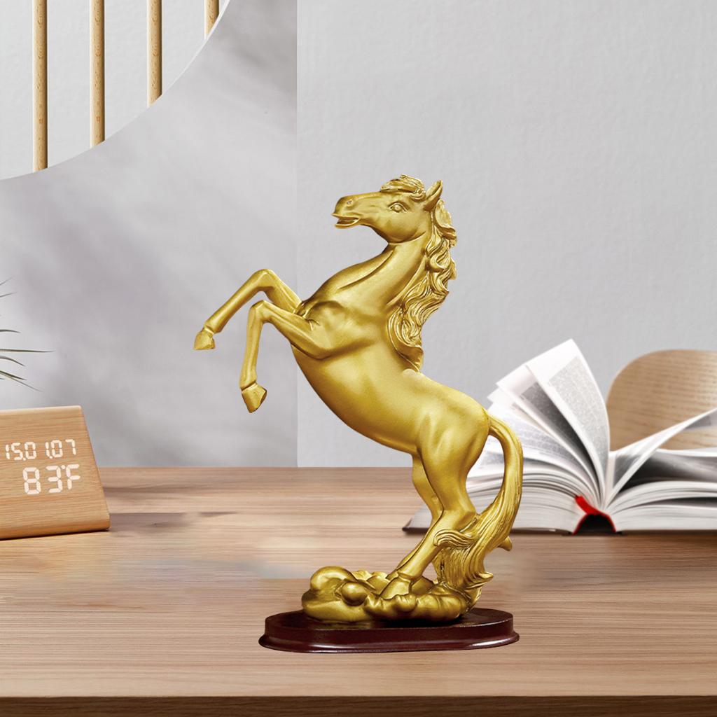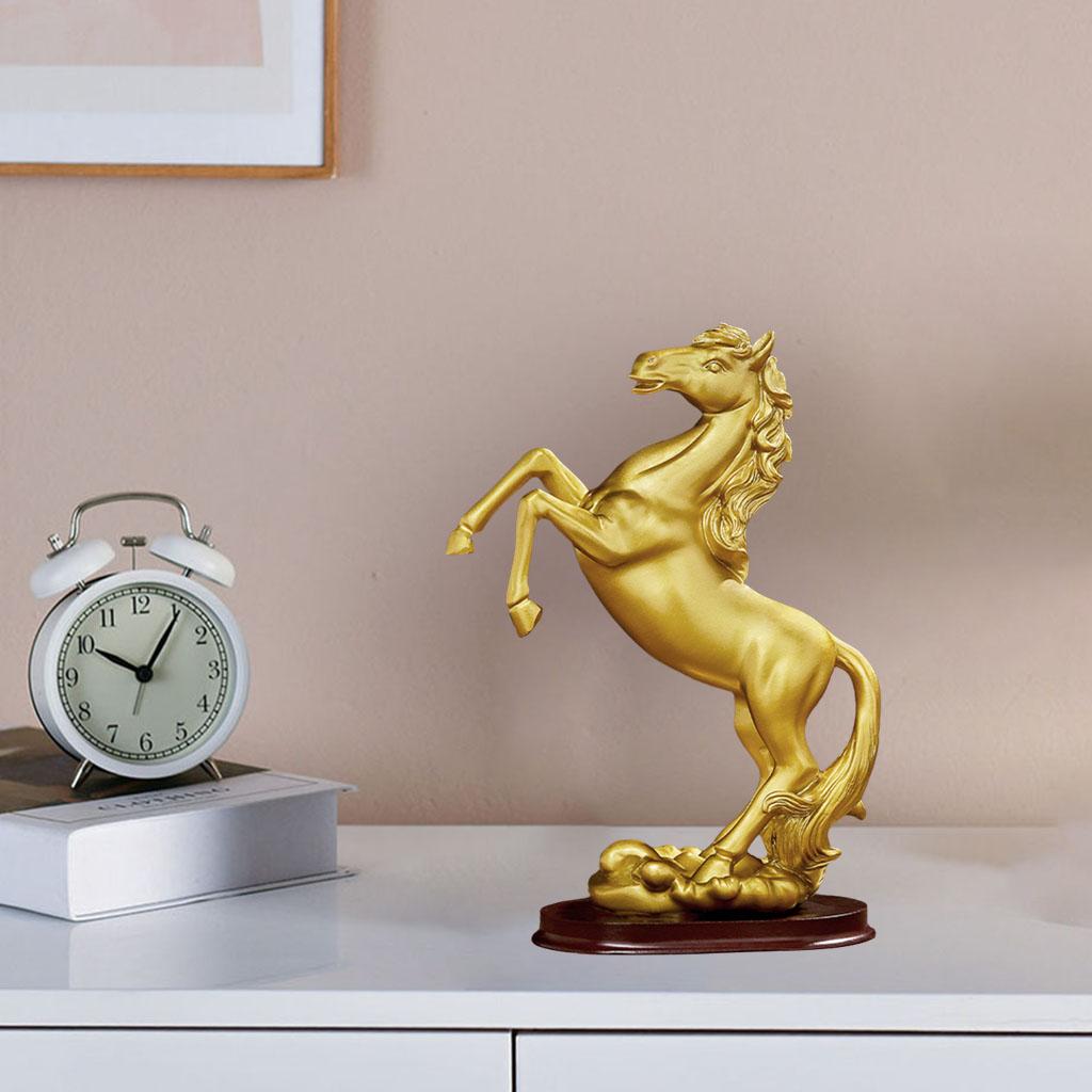 Description: Made from resin material, non-toxic, no odor, eco-friendly, fine workmanship artwork. Dimensions is about A: 25x9.5x23.0cm/9.84x3.74x9.06inch; B: 18x9.5x25.5cm/7.09x3.74x10.04inch. "Horse" means beauty, which can bring about the circulation of wealth and make the career go smoothly. Modern minimalist desk decoration, suitable for family, room, office, counter decoration, art collection. Can be placed on bookshelves, computer desks, living rooms, offices, bedrooms, work rooms and much more, It is a perfect decoration for Home,Office, and an exquisite desk decoration. Specification: Material: Resin Color: Gold Package Includes: 1 Piece Horse Statue *- collectible figurines modern style photo props *- galloping horse sculpture tabletop decoration *- animal art crafts resin sculpture ornament gift