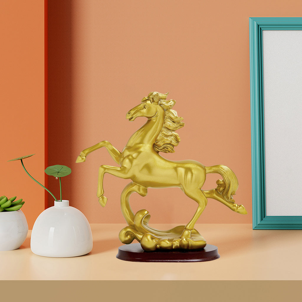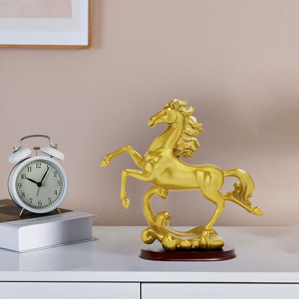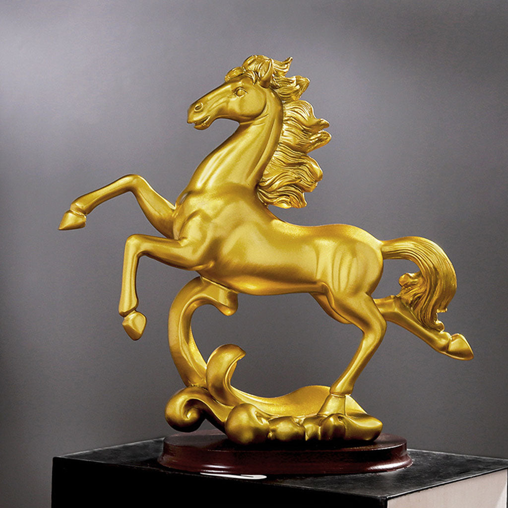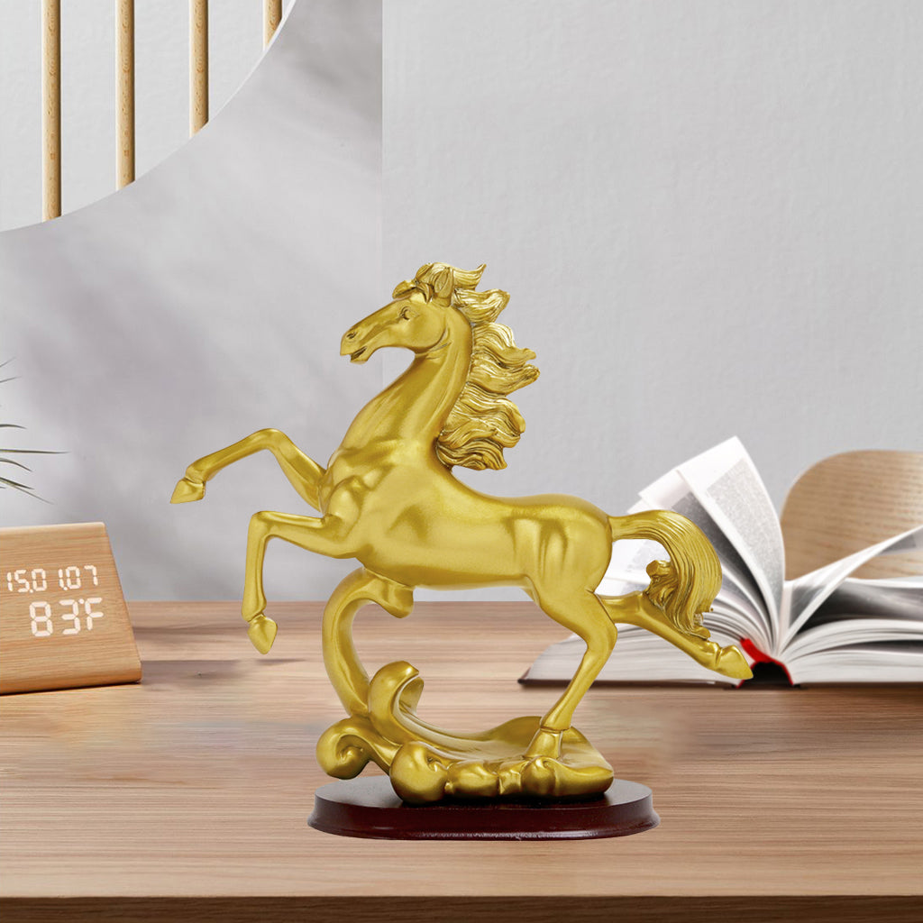 Description: Made from resin material, non-toxic, no odor, eco-friendly, fine workmanship artwork. Dimensions is about A: 25x9.5x23.0cm/9.84x3.74x9.06inch; B: 18x9.5x25.5cm/7.09x3.74x10.04inch. "Horse" means beauty, which can bring about the circulation of wealth and make the career go smoothly. Modern minimalist desk decoration, suitable for family, room, office, counter decoration, art collection. Can be placed on bookshelves, computer desks, living rooms, offices, bedrooms, work rooms and much more, It is a perfect decoration for Home,Office, and an exquisite desk decoration. Specification: Material: Resin Color: Gold Package Includes: 1 Piece Horse Statue *- collectible figurines modern style photo props *- galloping horse sculpture tabletop decoration *- animal art crafts resin sculpture ornament gift
