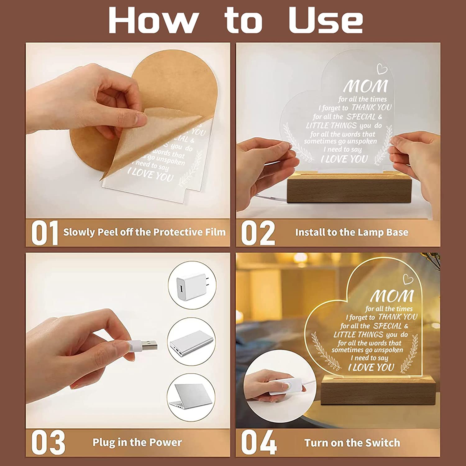 Mom Birthday Valentines Gifts Mothers Day, Acrylic Engraved Night Light 15*19CM