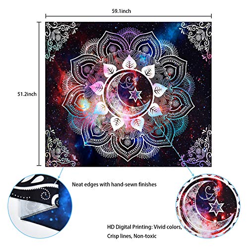 - ELEGANT & UNIQUE DESIGN: Mandala and starry sky have been subtly incorporated into this colorful bohemian tapestry design. It brings bright, vibrant and relax feeling to your any room or space.