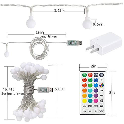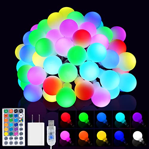 - 【Multicolor Frosted Globe Lights】This party ball string lights have 16 fantastic colors, 2 mixed colors, and 7 dynamic multi-color modes. The double silver wire design makes the color purer and more stable. You can choose different colors to create a charming, warm and attractive ambiance in your home and shops.