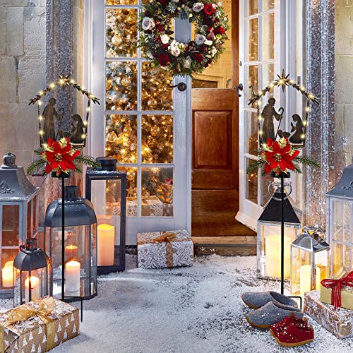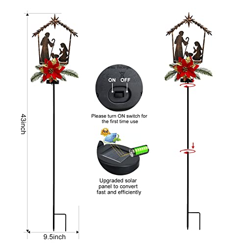 - 【Waterproof & Easy Installtion】This holy family decor piece is waterproof, designed to withstand sunny days, rainy nights, and small snowy days.Turn on the solar panels and switches,then push the stake into the soil or snow, automatically turn on at night and turn off at dawn.