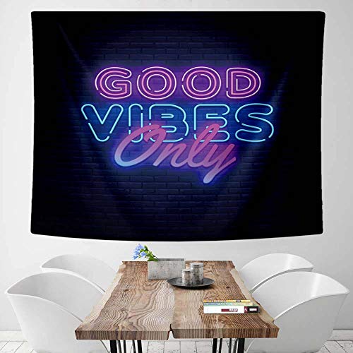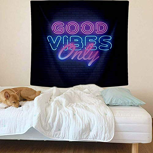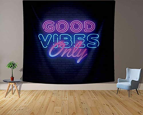 Neon Good Vibes Only Words in Neon Tapestry Wall Decoration Black Blue 60x50inch