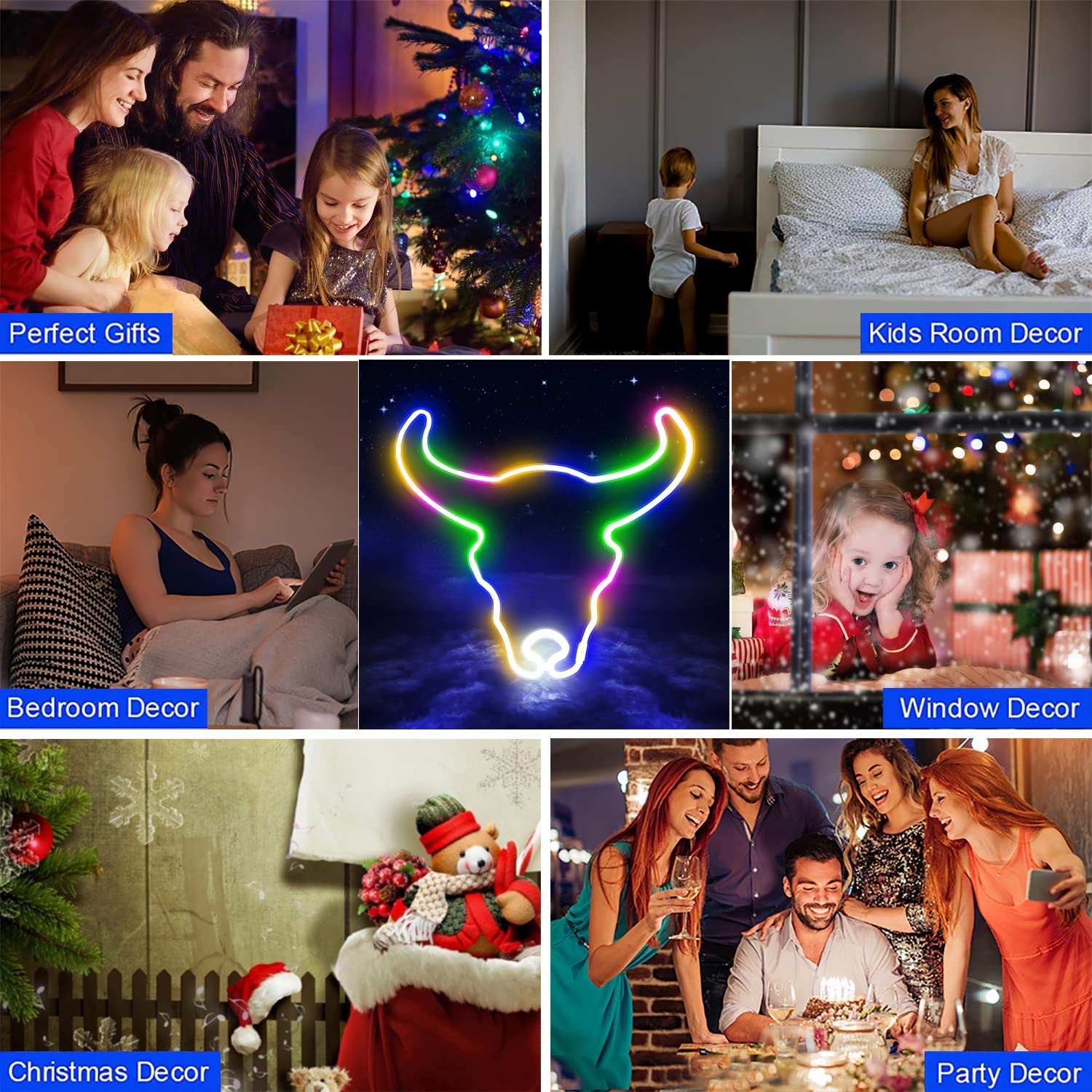 - Quality/Safety/Energy SavingBull head LED signs are made of top quality flexible silicone LED strips and acrylic panels, making the light transmission extremely strong and the light soft and even; our neon signs are made of 3V low voltage advanced electrode system, low energy consumption, long life, no risk of overheating or glass damage when decorating your kids' bedroom.