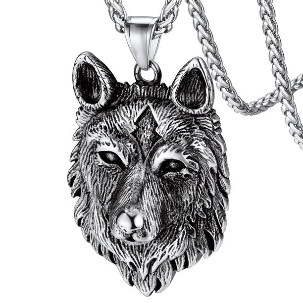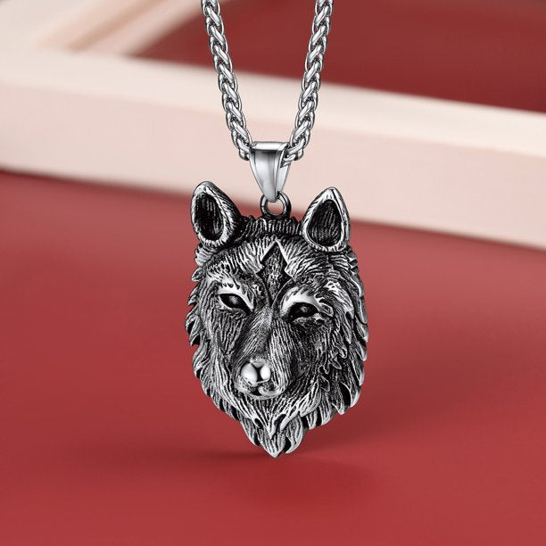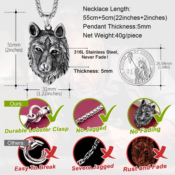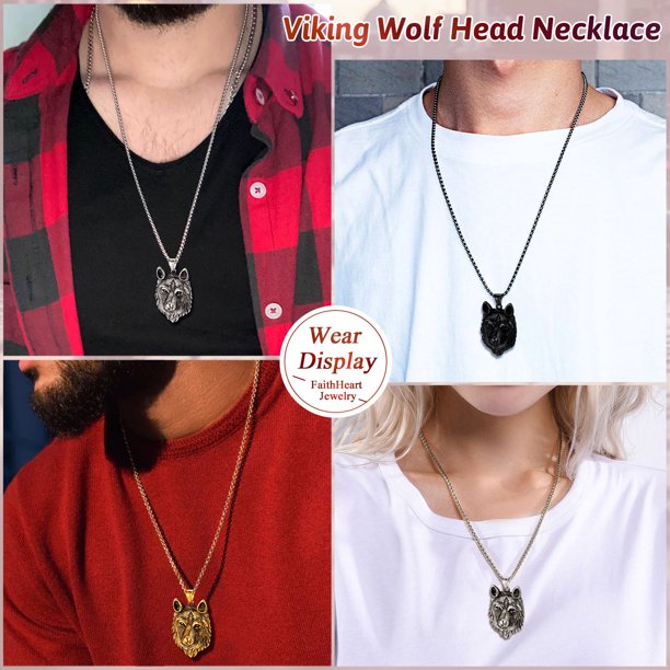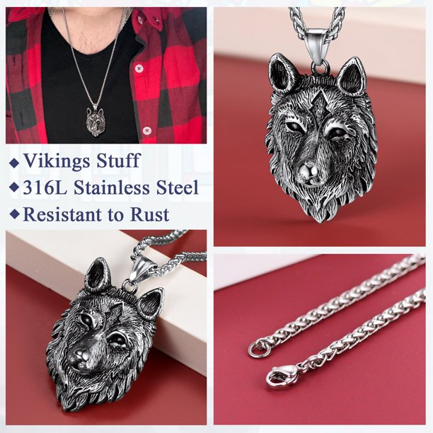 - Stunning Wolf Pendant Necklace: Dangling below the wheat chain is the glittering wolf head pendant that combines celtic knot element and captures attention from all around. Gothic & Attractive Amulet Accessories.