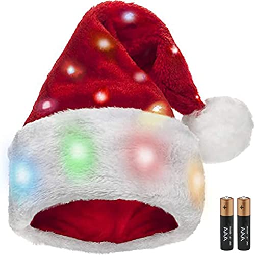- SOFT - A scratchy, felt Santa Claus hat is so last Christmas. This holiday season, gift yourself and loved ones a light up Santa hat made with oh-so-plush polyester. Perfect for staying toasty warm.