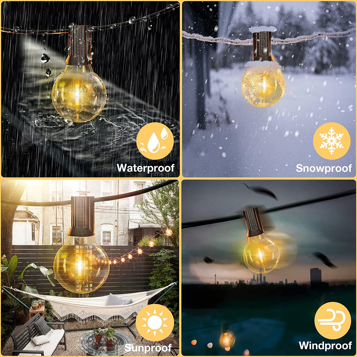 - 【Waterproof & Shatterproof Outdoor Lights】 -This outdoor string lights are ETL listed with fully sealed and IP45 waterproof design socket, adopted heavy-duty durable sting wire and shatterproof bulbs with hooks, held up in the terrible weather rain, snow, wind, storm. What’s more, we prepare 2 fuses for this string lights for outside, double safe for your family.