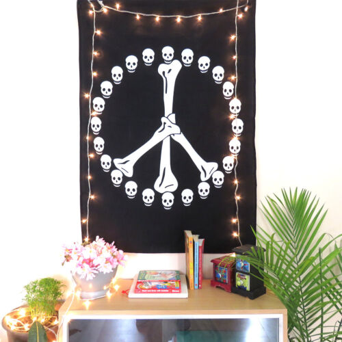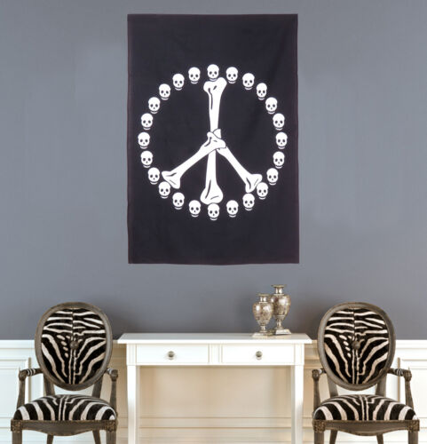 Peace Sign Skull Bones Black White Wall Poster Hippie Wall Decor Tapestry
