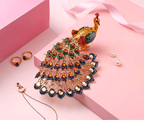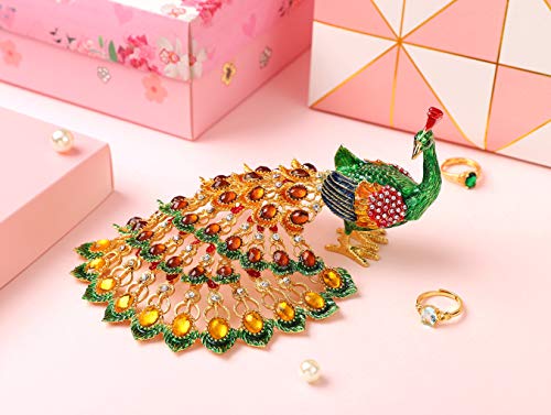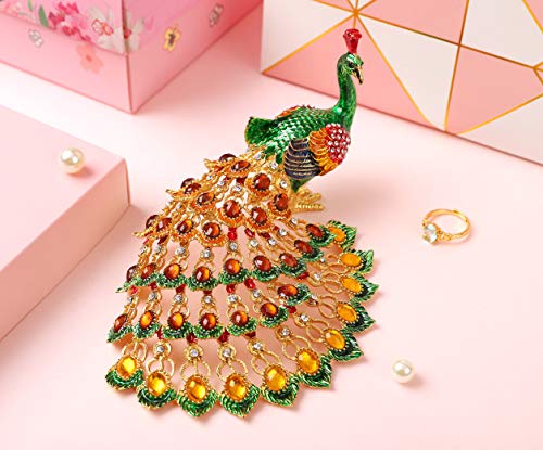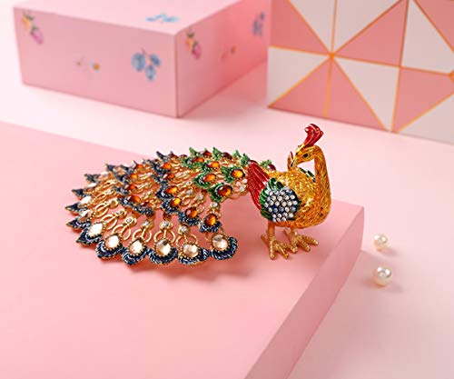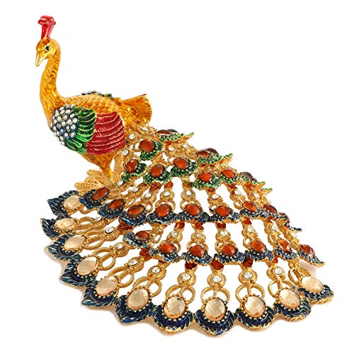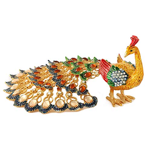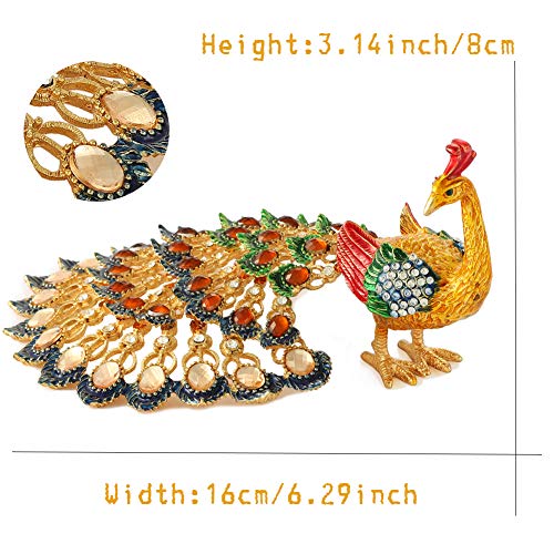 - Peacock jewelry trinket box is made of zinc alloy,colorful enamel and high quality rhinestones.