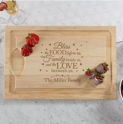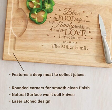 Personalized Maple Wood Cutting Board, Custom Thanksgiving Bless This Food, Family Name Engraved on 17"L x12"Wx 3/4"H