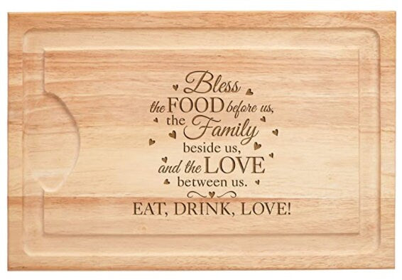 INSPIRATIONAL KITCHEN DÉCOR: Elegantly scripted and laser engraved with the prayer: Bless the food before us, the family beside us, & the love between us. Amen. Great hostess gift or housewarming gift for couples or anyone setting up a home looking for an encouraging faith gift.
