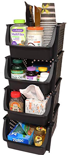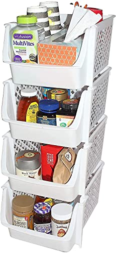 Plastic Stackable Storage Bins for Pantry - 4-Pack
