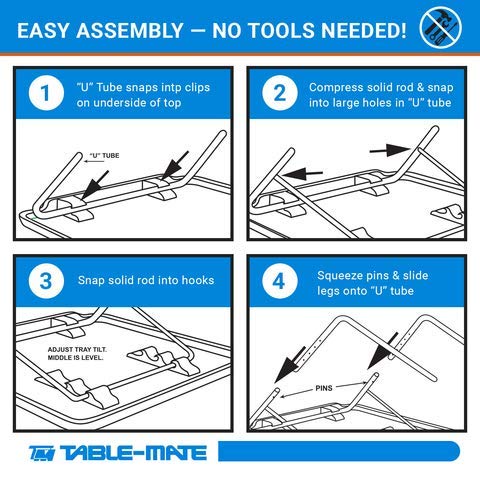 - Easy to Assemble - No tools needed to put this TV table together. Just slide the steel legs together, insert the rods, and add the tray. To store, simply fold and pack away.