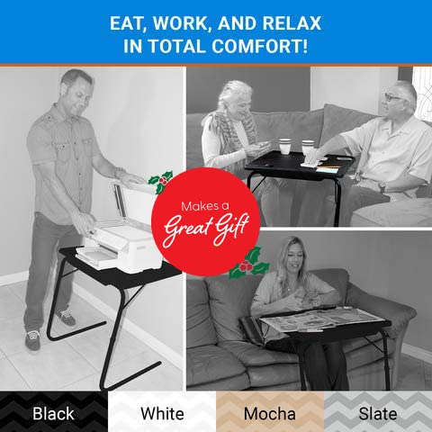 - Adjustable - With 6 different heights and 4 convenient angles, this food tray brings 24 accommodating options to the table when chowing down, reading, or working.