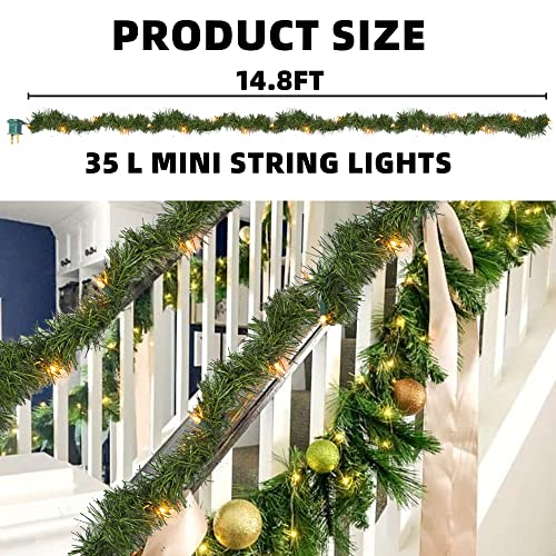 - Garland Specifications: Dazzle Bright 15 ft Christmas garland with 35 LED mini string lights. The Christmas garlands features beautiful, natural branches, for a holiday look beaming with realism and charm, that is sure to impress family and friends alike.