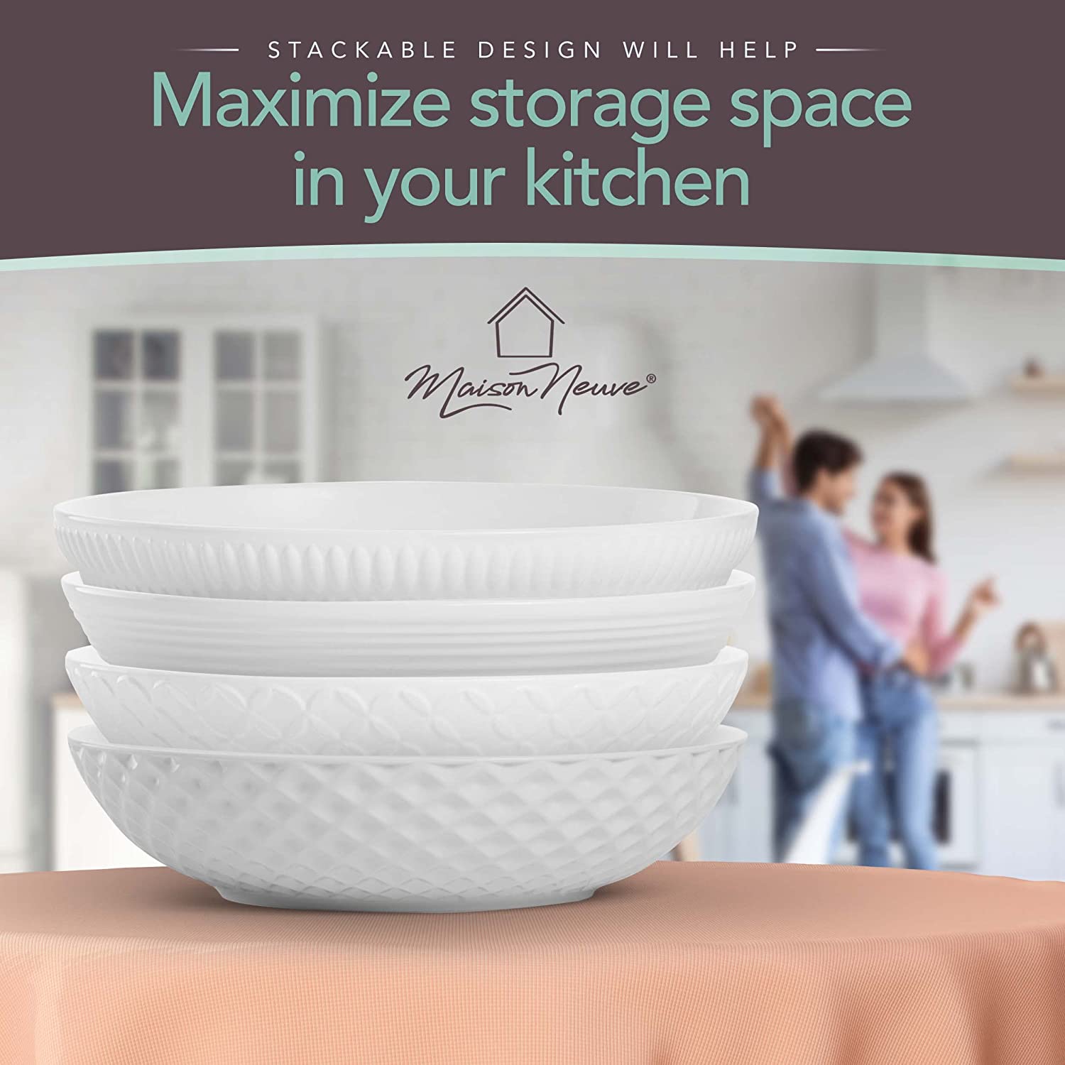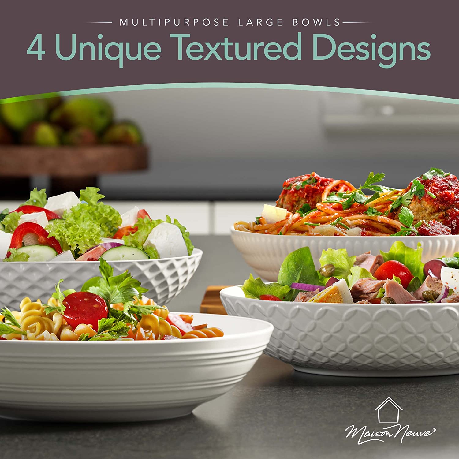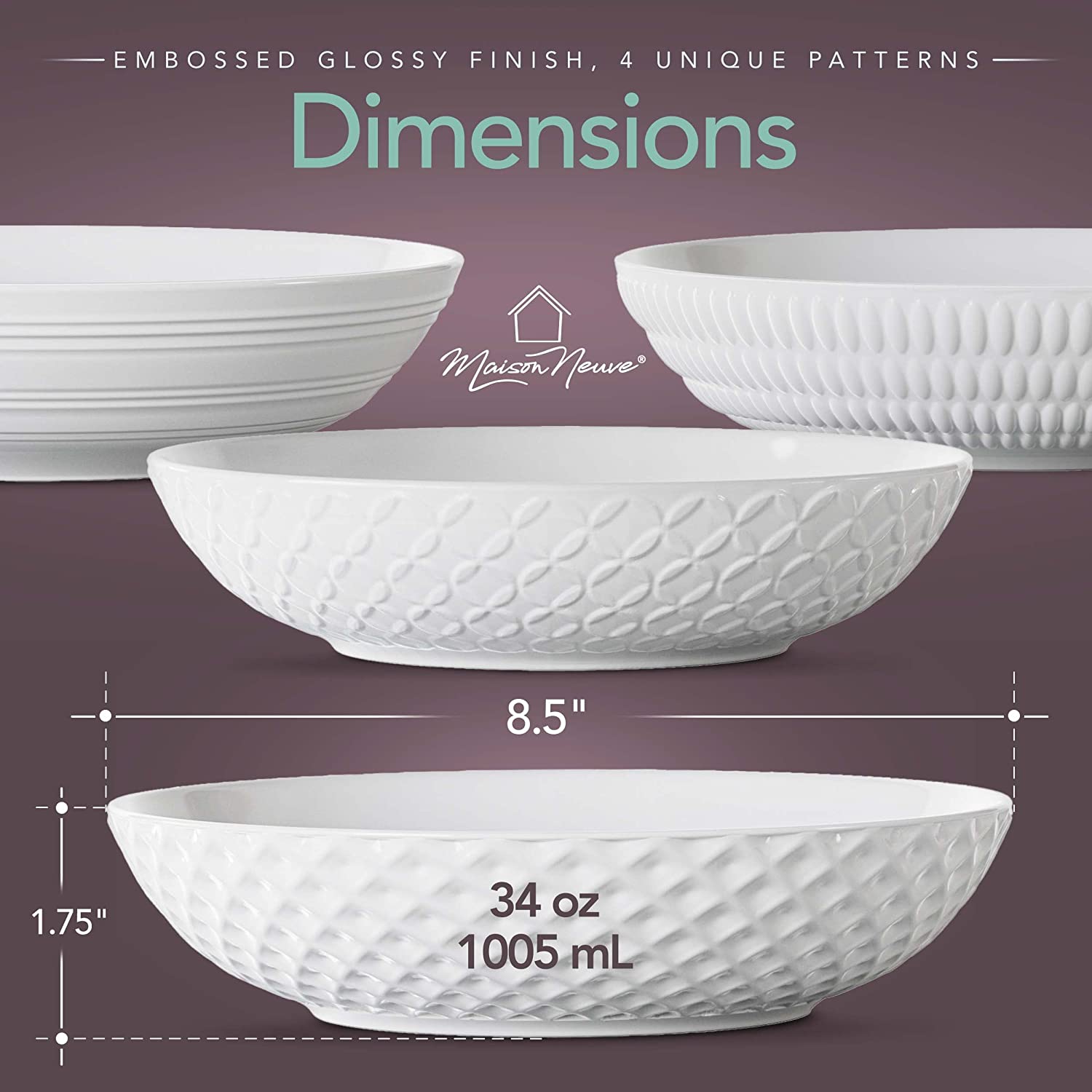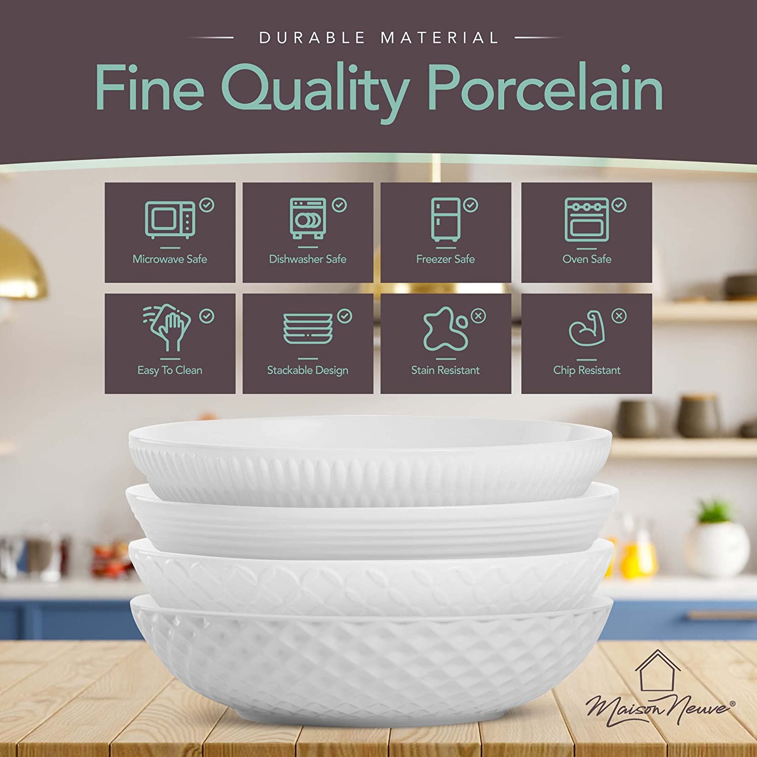 - PORCELAIN DINNER BOWLS FOR TIMELESS BEAUTY & FINESSE: Add a touch of classy charm and elegance to any dinner setting with the premium Maison Neuve serving bowls that are sure to make the best impressions. With attractive designs and superior quality porcelain, you will cherish these beautiful bowl sets for a lifetime!