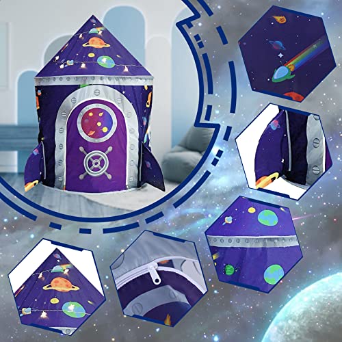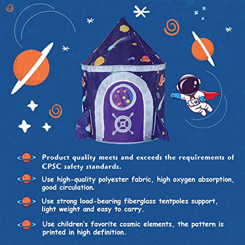 - GREAT ROCKET SHIP TENT: This rocket ship playhouse will keep your children entertained for hours! Vibrant detailed illustrations on the tent will let your child's imagination soar. Use the playhouse as a learning tool to teach about planets, galaxies and other celestial bodies. A must for the active baby, cats and dogs!