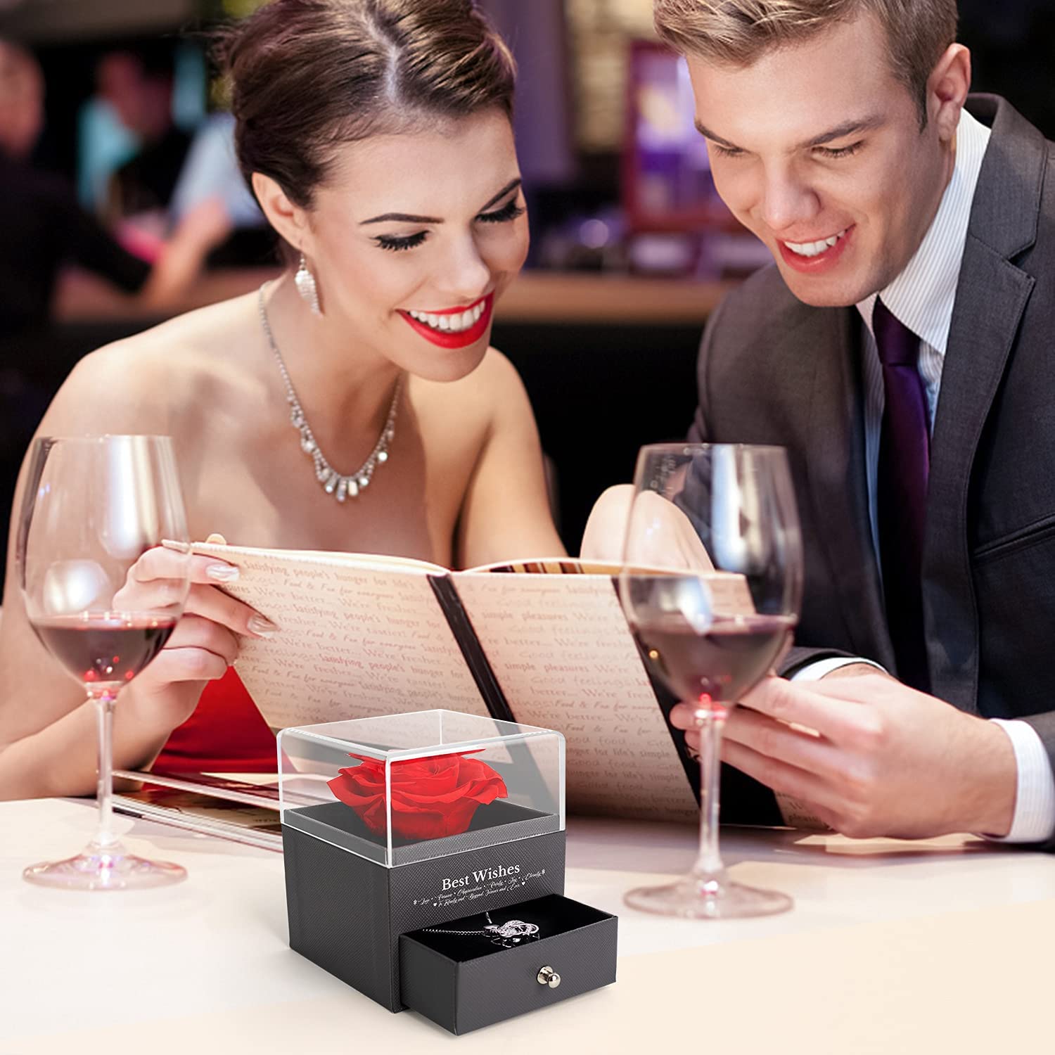 - š¹ [Small Jewelry Box with Drawer] eternal rose is displayed in an elegant jewelry box which has a small drawer itself. The box is sturdy and durable, providing nice protection for your necklace. As an exquisite luxury gift, you can also use it to store any other small jewelry like rings, earrings.