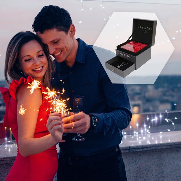 - 【With Necklace】The base has a drawer, which contains a necklace (the necklace can express "I love you" in 100 different languages). The necklace is available in white gold and rose gold. As an exquisite luxury gift, rose jewel case can also store other jewelry or rings.