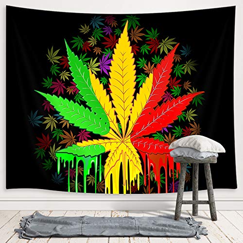 Psychedelic Rasta Tie Dye Special Plant Trippy Tapestry (60" W X 40" H)