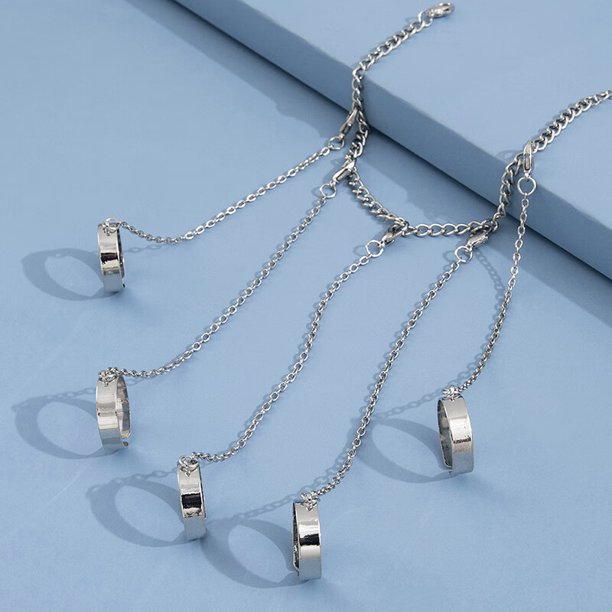 Punk Geometric Chain Wrist Bracelet For Women Men Ring Charm Set