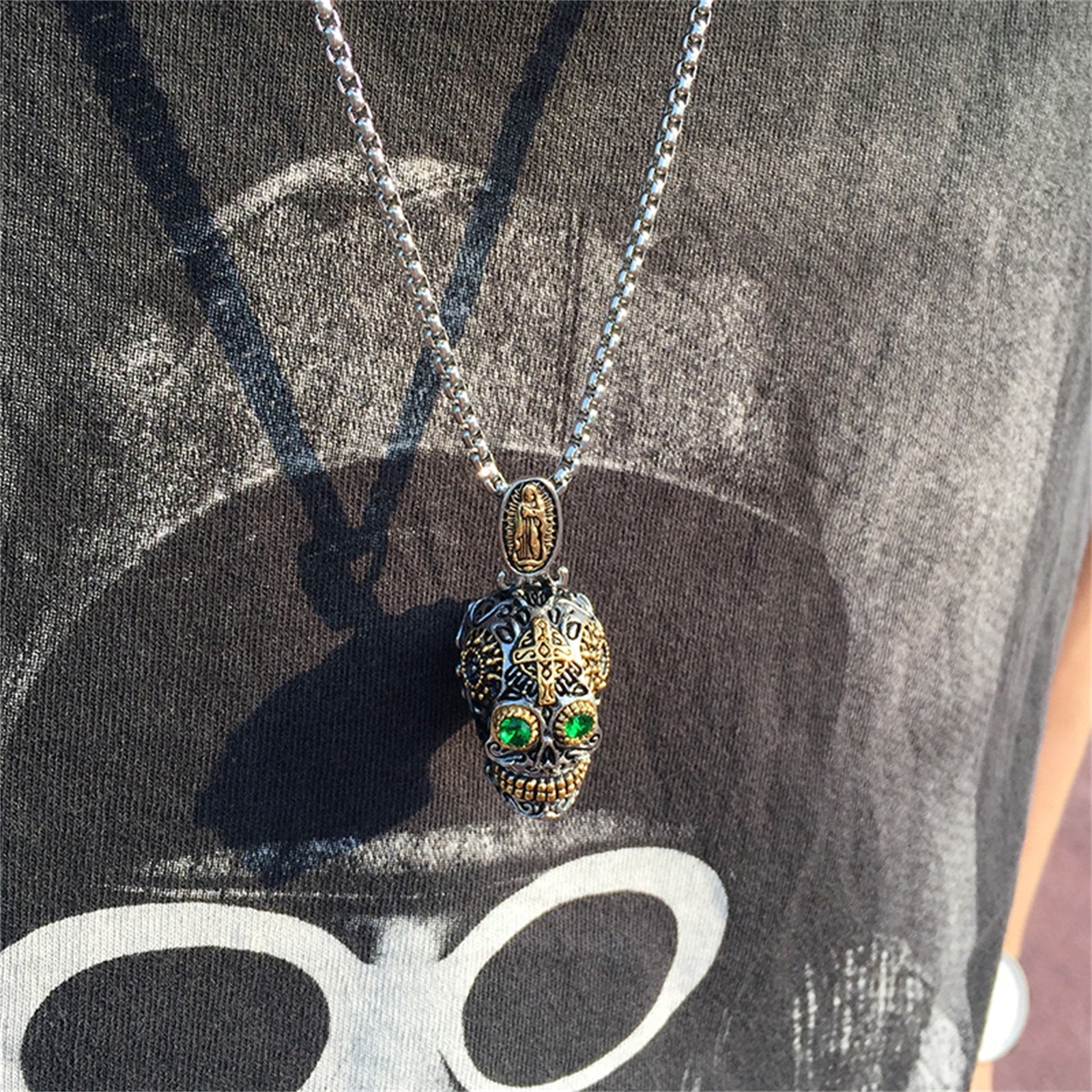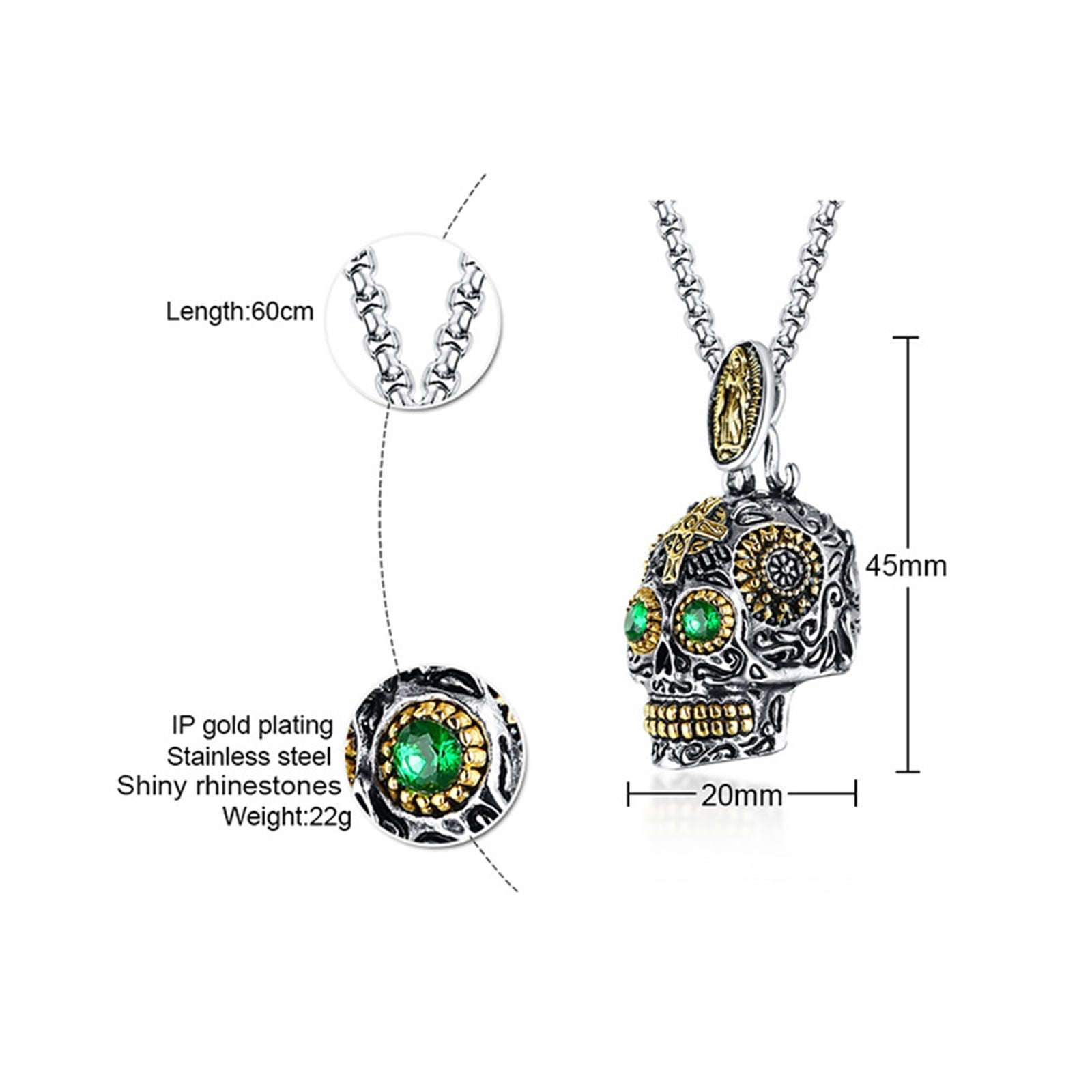Punk Skull Green Eye Pendant Necklace for Men & Women