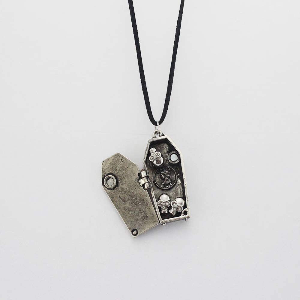 Punk Style Cool Mens Women Stainless Steel Skeleton Skull Coffin Pendant Necklace