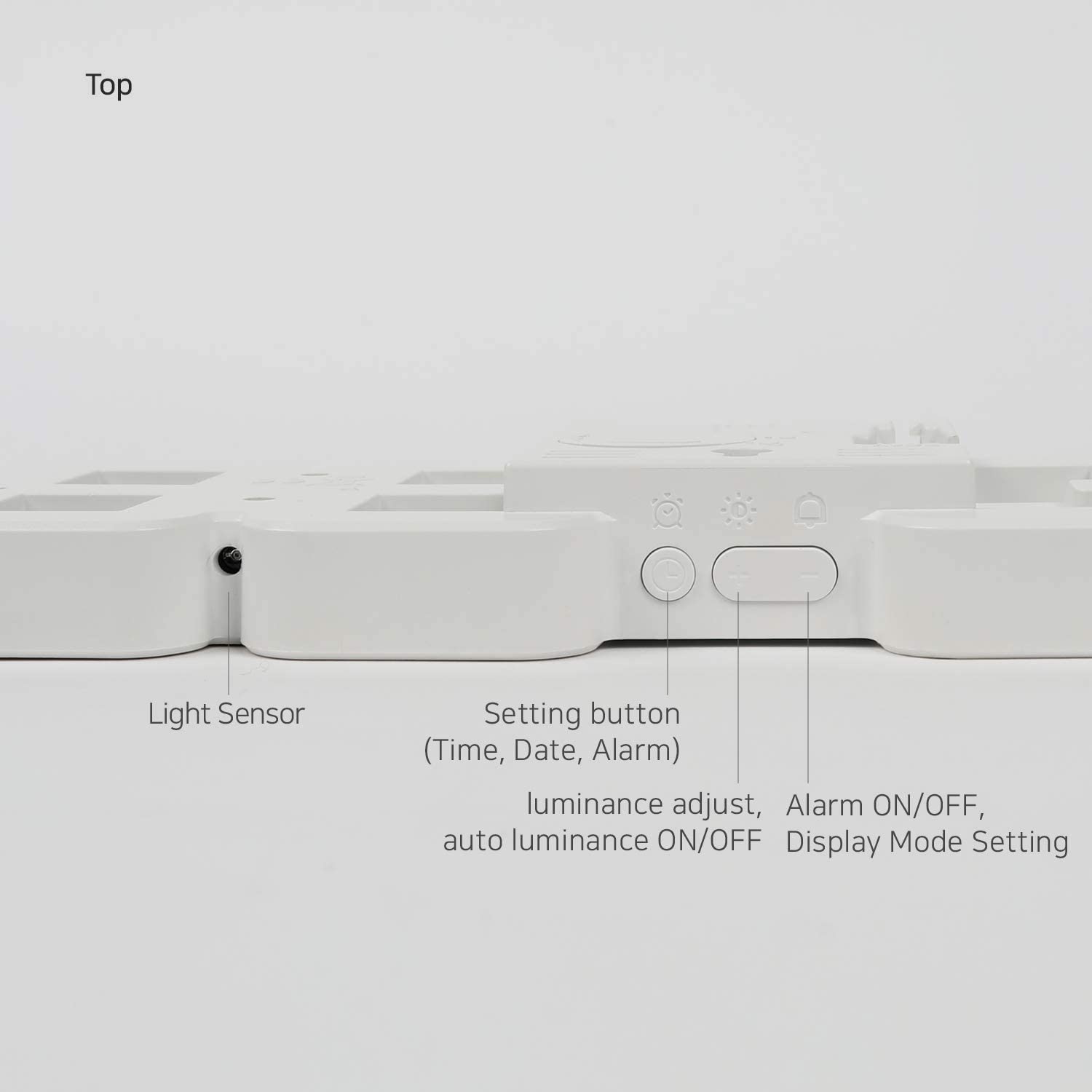 - Calendar, Alarm, Temperature (℃ or ℉, Range: 16℉~122℉), 12/24H time mode, 3 levels bright (High->Medium->Low->Off)