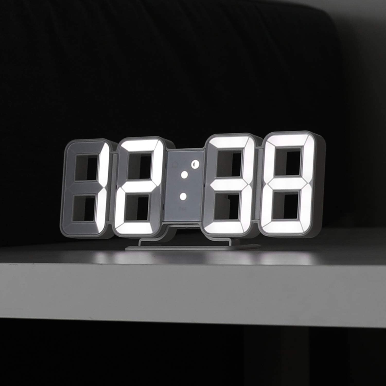 Pure Mini White 3D LED Clock, Multi-Function LED Clock (Calendar, Alarm, Temperature)