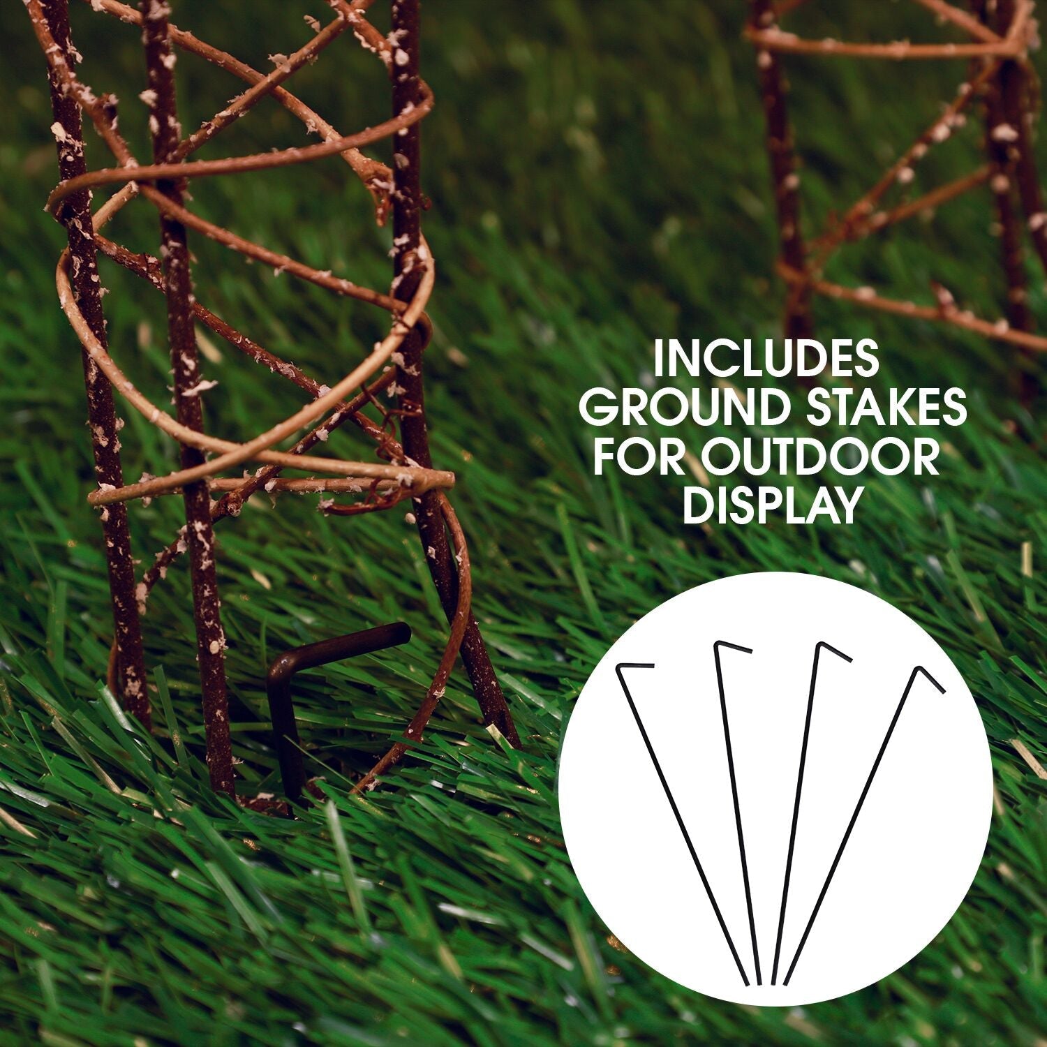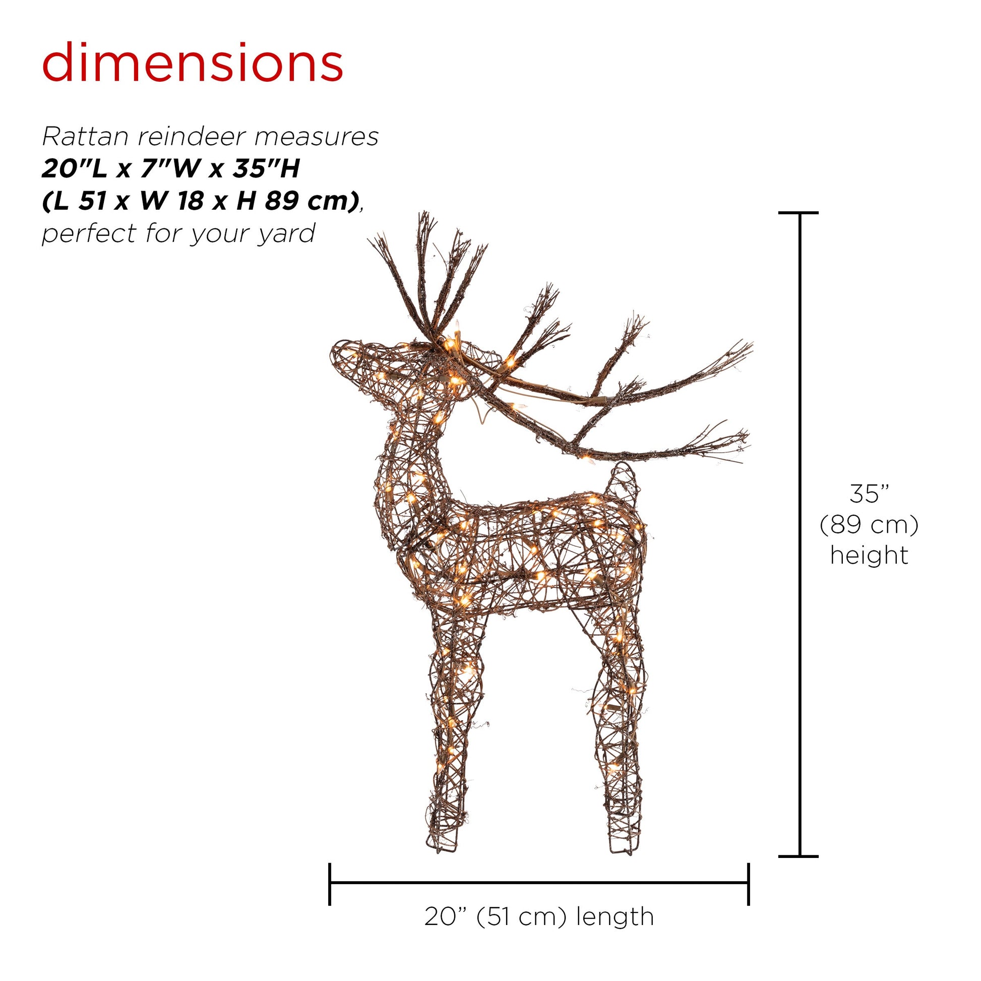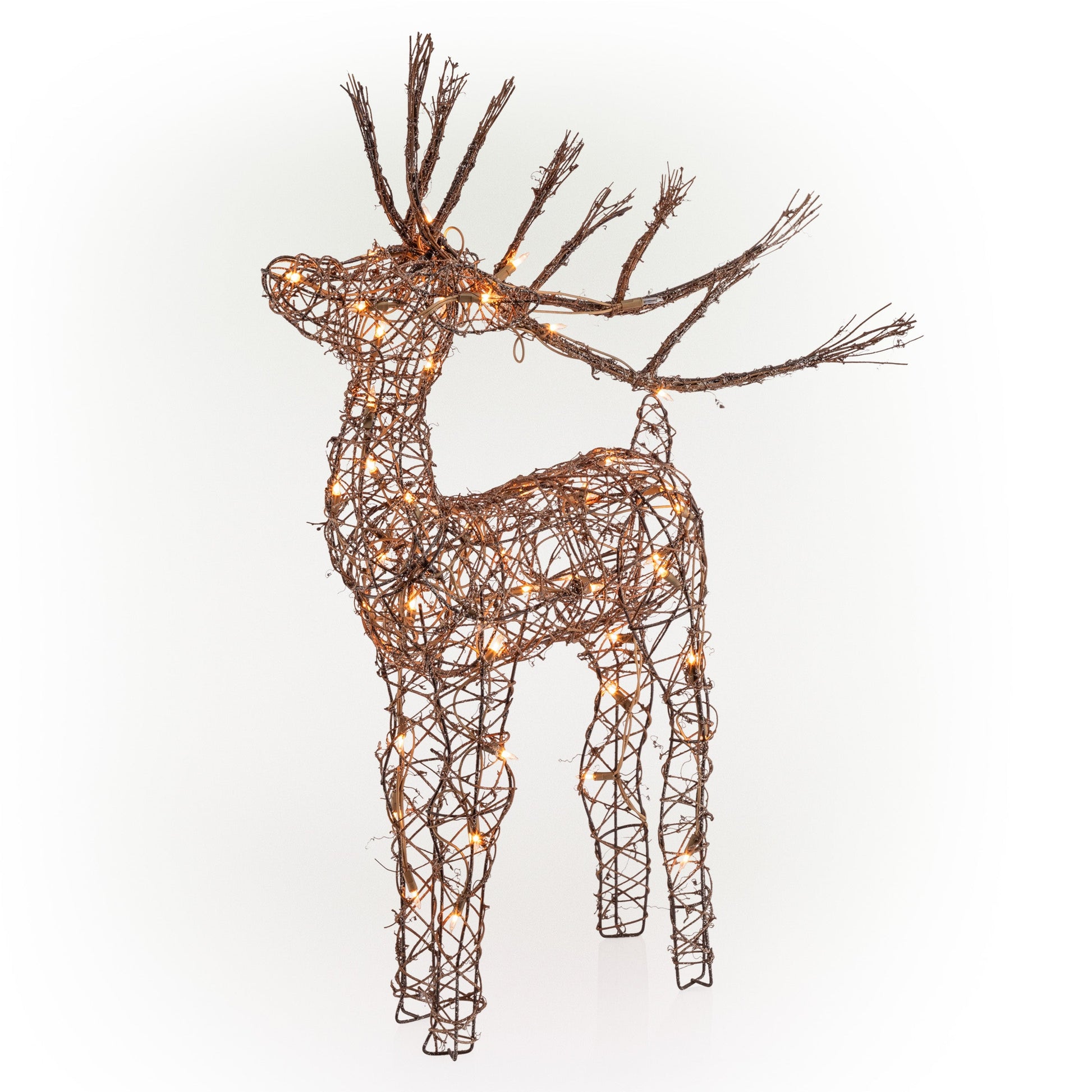 Upgrade your holiday decor with Alpine's Rattan Reindeer! This reindeer features a robust iron frame dedicated to keeping it standing upright, making it the perfect for your garden or yard. It includes 50 UL listed halogen lights to brighten your evening. Plug into the nearest outlet for a festive display! The reindeer comes with 4 black-colored ground stakes to make setting up in your yard easy. You'll love coming home each night to a beautiful sight in your yard. Alpine's Rattan Reindeer measures 20" x 7" x 35", perfect for your holiday display. Founded in 1999, Alpine's award winning in-house design team continuously develops new and innovative "statements pieces" for your home and garden. Your outdoor living spaces will be the envy of the neighborhood with our wide assortment of fresh, fashionable and contemporary products, from beautifully crafted solar garden stakes featuring patented motion and fiber optic lighting technology to gorgeous glass and glow-in-the-dark bird baths and feeders. Plus, our world-class sourcing operation guarantees the highest quality products, delivered on time and at affordable, competitive prices.