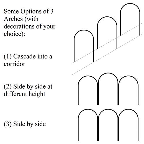 - Can be built as either a tall 90”x64”x12” or wide 76”x92”x12” arch to suit your application. Package contains 1 black powder coated steel arch (weather-resistant epoxy paint). Illustrative plants and decorations are not included.
