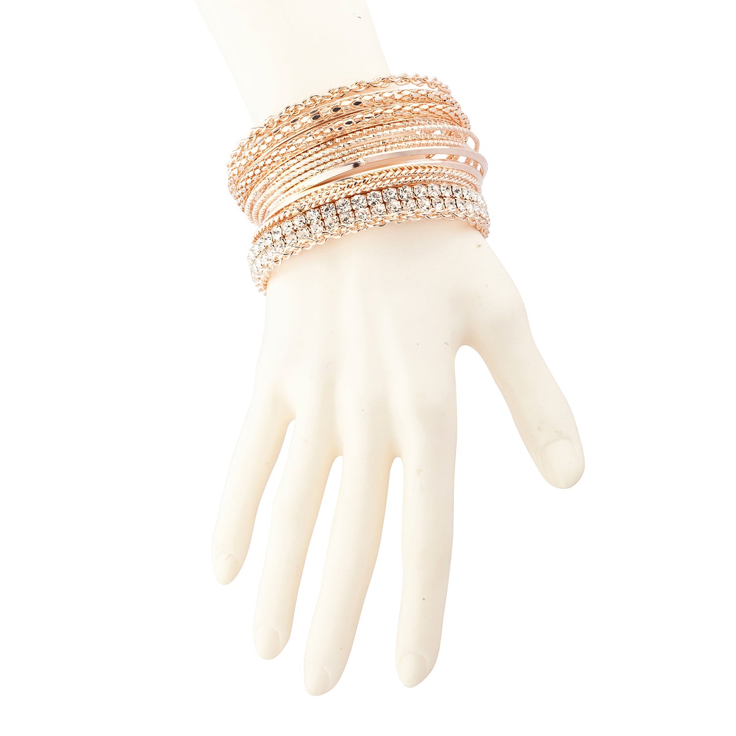 Rose Gold Tone Chain Rhinestone Bangle Bracelet Set for Women