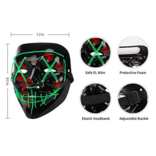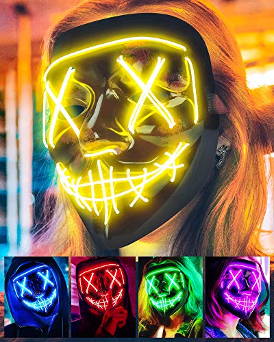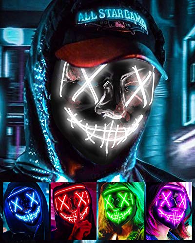 - LIGHT UP YOUR HALLOWEEN - This scary LED light up mask works perfect for any occasion, such as Purge Themed Halloween, Rave Parties, Clubs, Masquerades, Costume Parties, Carnival, and other events.
