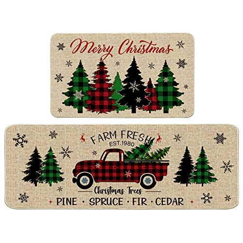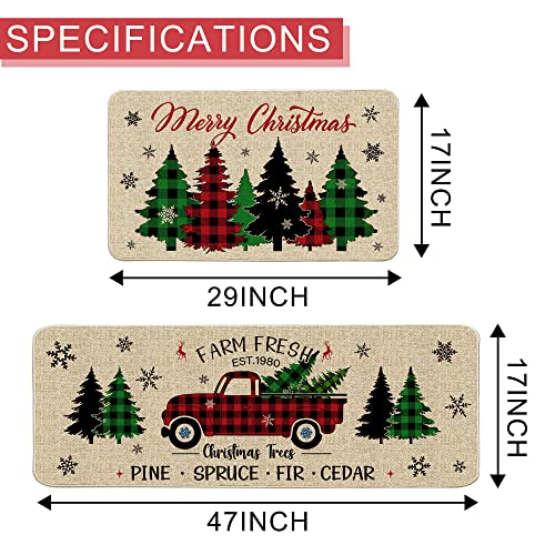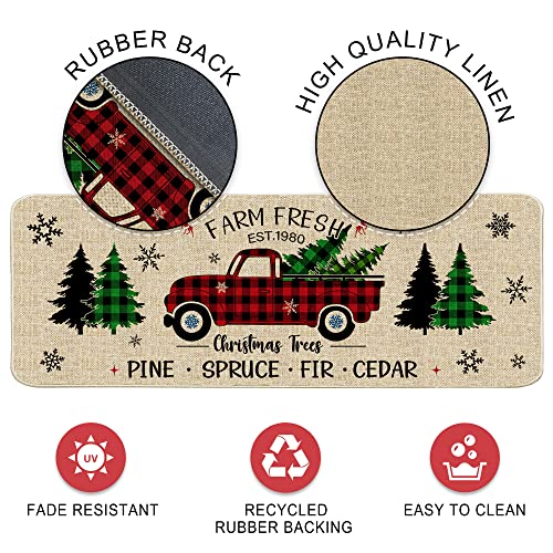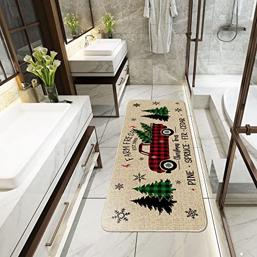 - The Material and Non Slip Design - The christmas kitchen rug is made of burlap material as the top surface keep the farmhouse and natural texture and also using the non-slip rubber as the back,
