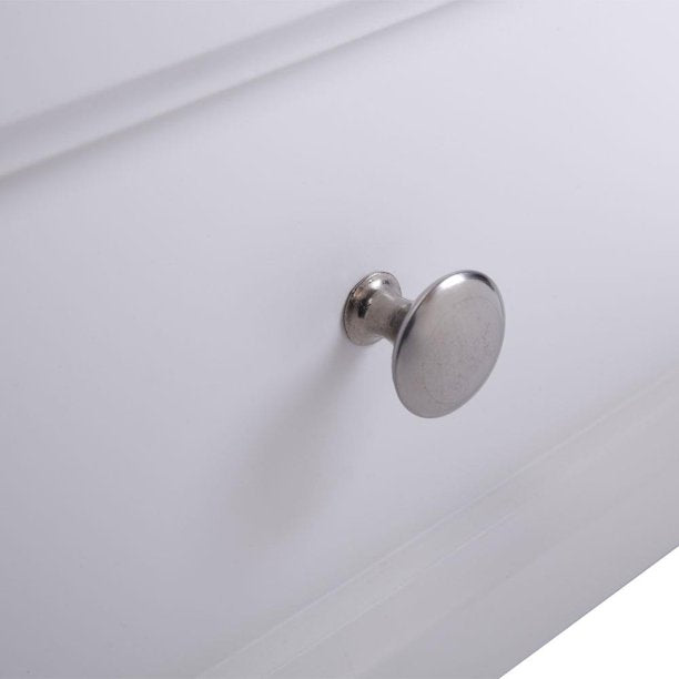 The drawer handle is made of metal and the round design makes it easier to open the drawer.Our night stand also has a smooth track,ou can use it for a long time.