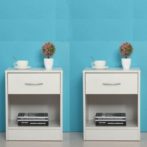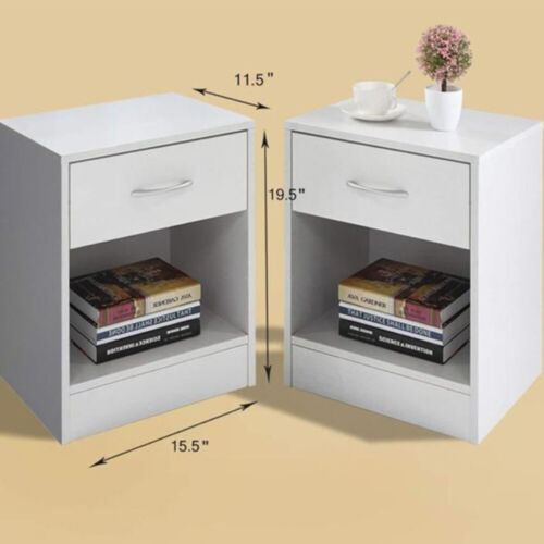 Set Of 2 Nightstand Wood End Table Bedroom Storage