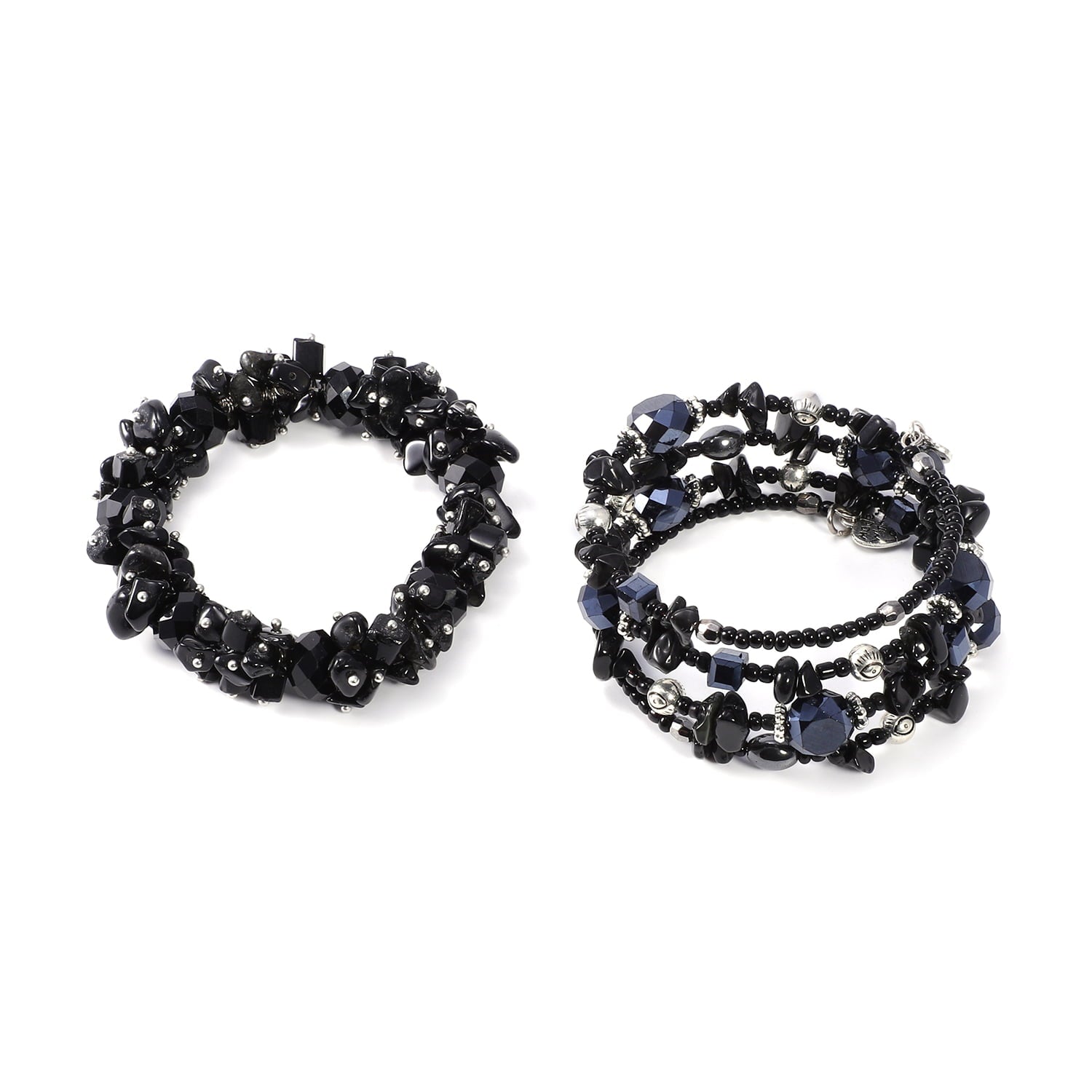 Set of 2 Women Bracelet Black Obsidian Glass Resin