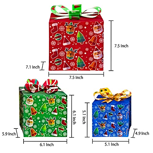 - Ideal gradient size: Large Christmas gift box measures 7.1"L x 7.5"W x 7.5"H, Medium 5.9" L x 6.1" W x 6.1" H, and Small measures 4.9" L x 5.1" W 5.1" H. Their sizes can be overlapped one by one to facilitate storage, carry and save space. At the same time, we use the power plug to replace the battery box, which is easy to install. When used them together, your Christmas Eve will shine, creating a warm, happy and unforgettable Christmas Eve.