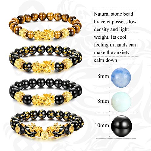 - 【Feng Shui Pixiu Bracelets】You can get 6 pcs Feng Shui PiXiu bracelets for men and women in one order:3 pcs black obsidian bracelets(10mm), 1 pcs tiger eye bracelet(8mm), 2 pcs natural stone bracelets(8mm).The beaded bracelet with PiXiu has deep meaning. This Chinese dragon symbolizes good luck and wealth.