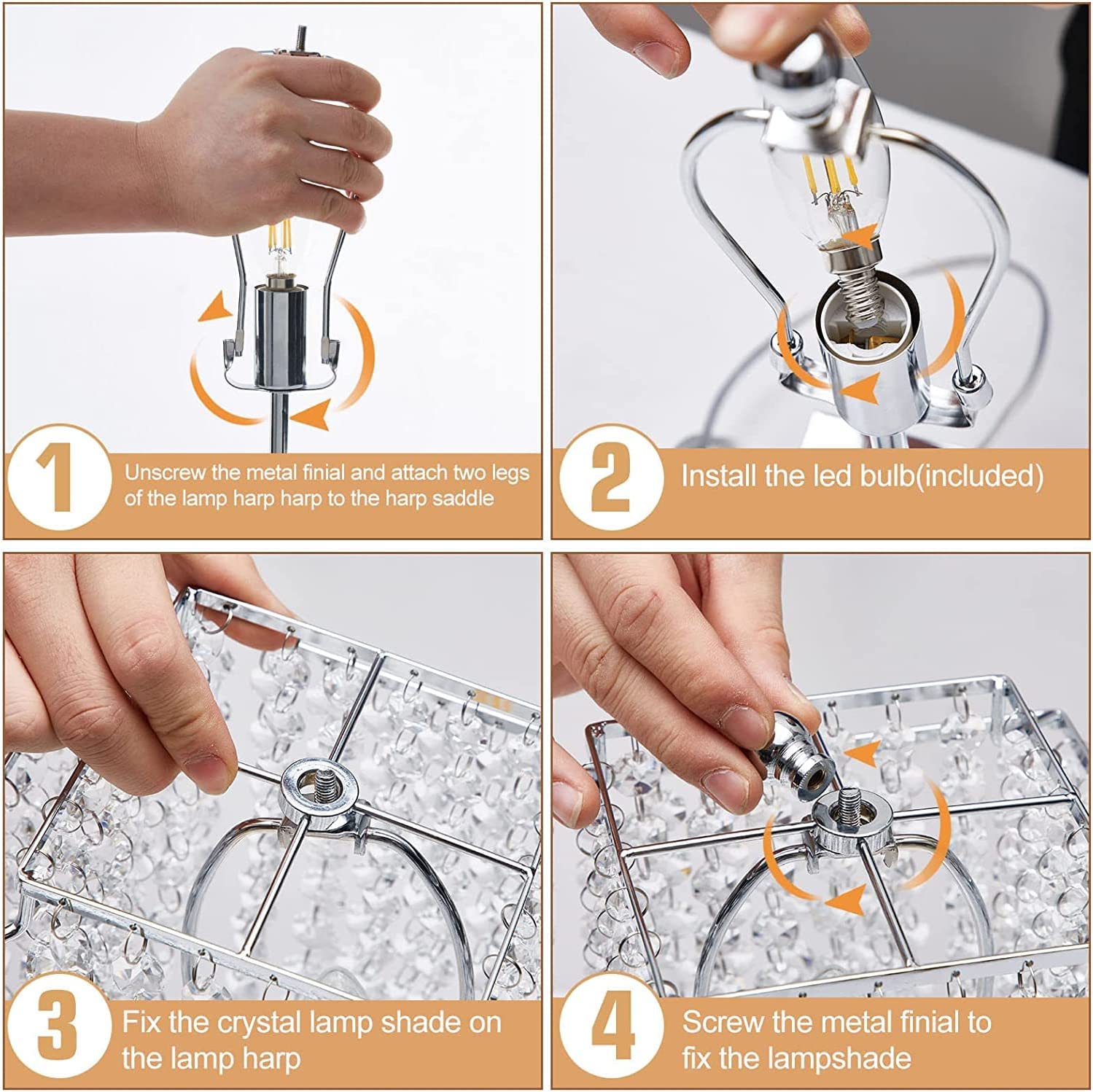 - 【Easy Installation】Unlike other crystal table lamps that require manual assembly of crystal strings, the strings of our modern bedside lamps are attached to the lampshade. Save assembly time, avoid the risk of scratching your hands. Quickly Finish the Installtion within two minutes.