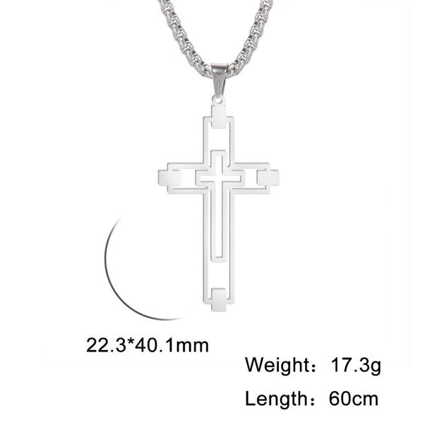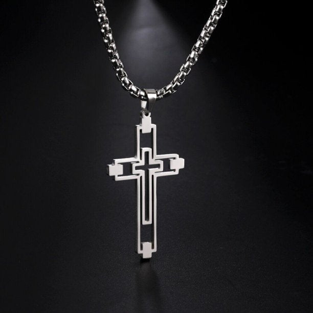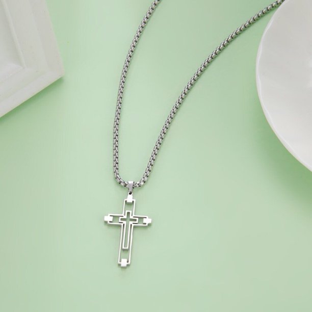 Silver Vintage Cross Pendant Necklaces for Men Women Stainless Steel Necklace Box Chain